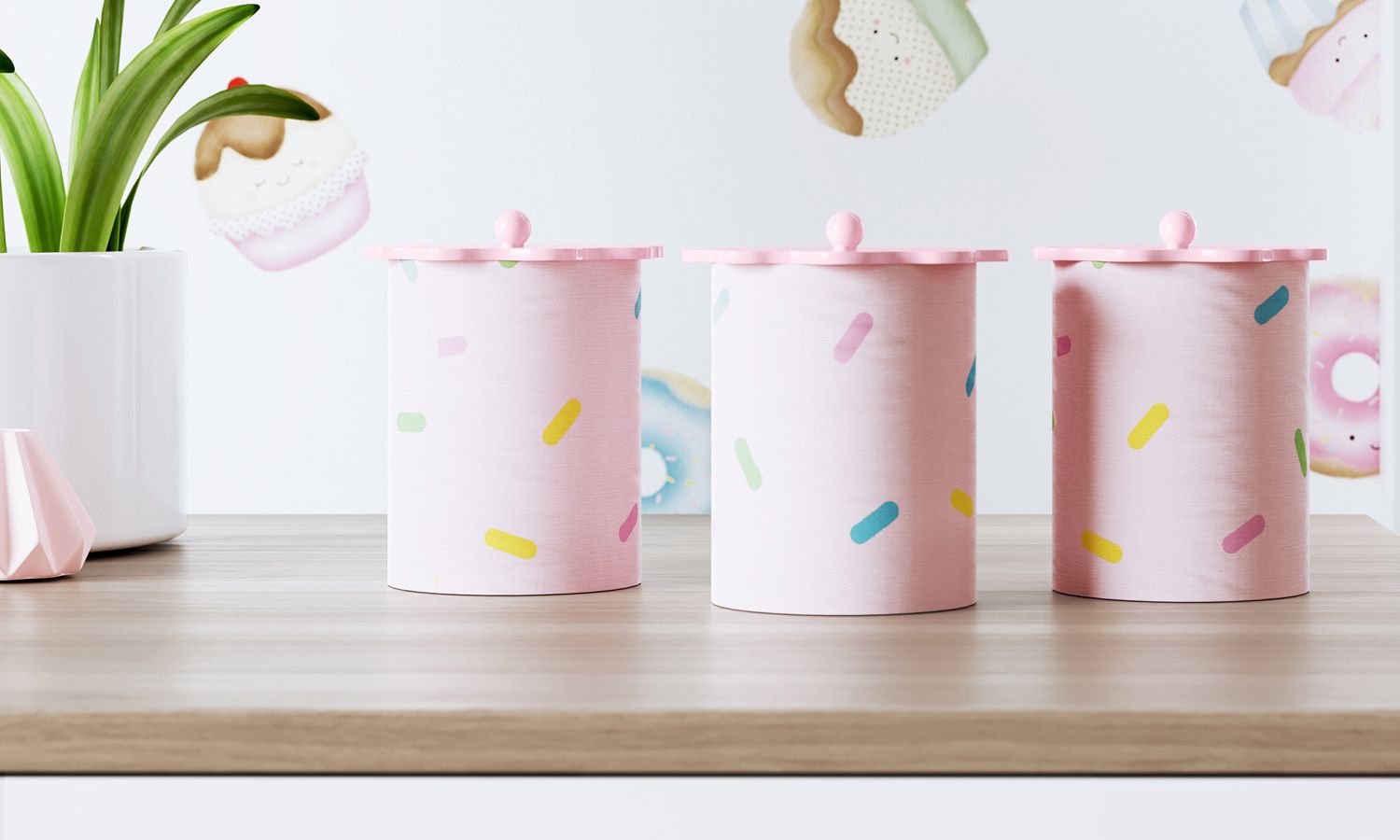 O Jogo de Potes Doce Encanto é pura doçura e praticidade! Os potinhos plásticos são revestidos de tecido rosa com estampa de granulados coloridos. O acessório é versátil e pode ser usado para guardar algodão, cotonetes, toalhinhas enroladas, ou o que você quiser!