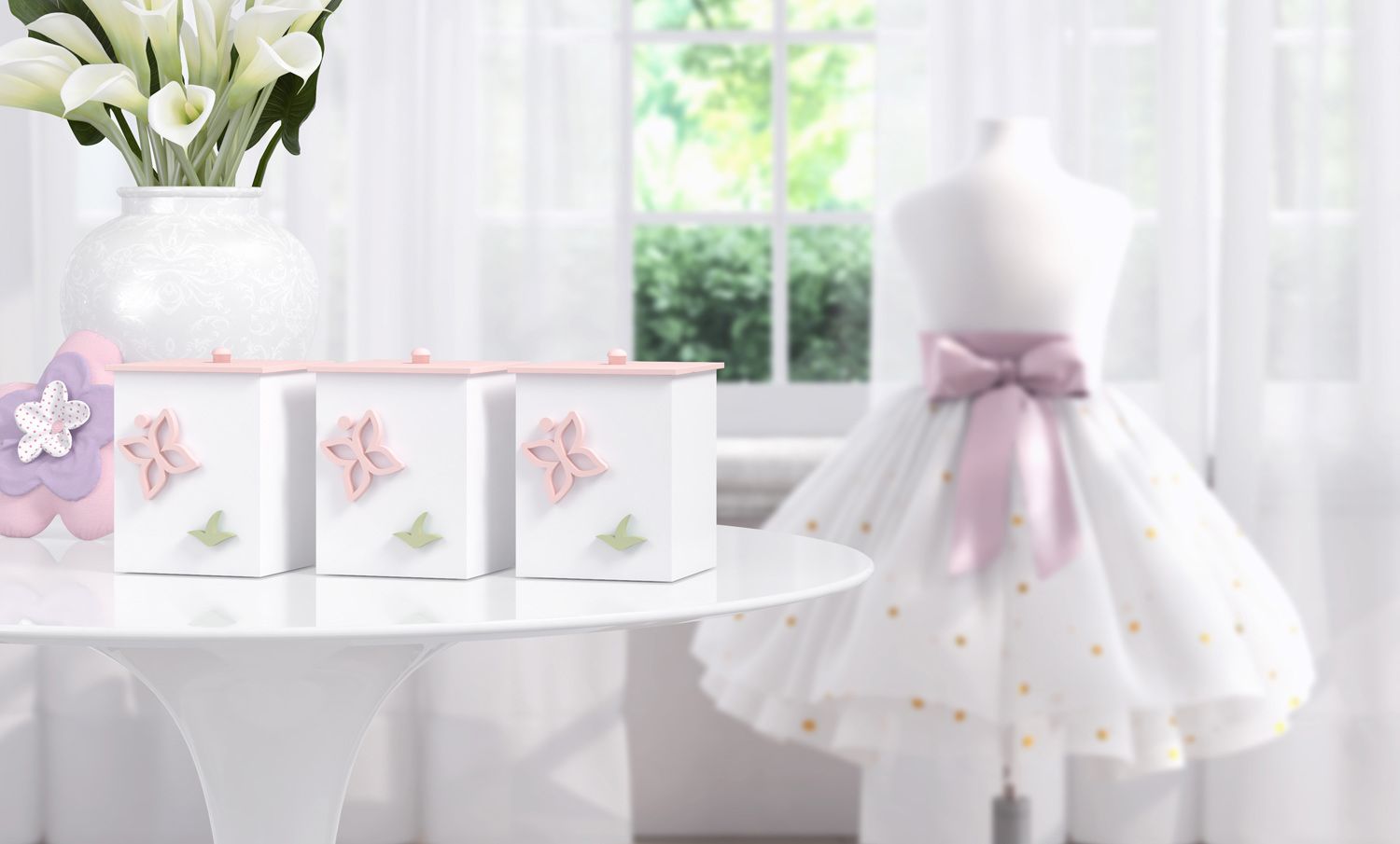 É sempre bom ter opções lindas e funcionais para guardar e organizar os pertences da sua pequenina no quarto de bebê. O Jogo de Potes Floral Monet não somente atende suas expectativas, mas as supera! Os detalhes das florzinhas e plantinhas deixa tudo mais gracioso, com jeitinho de menina. As delicadas cores branco, rosa e verde são suaves e meigas e fazem dessas funcionais caixinhas uma ótima escolha para tornar a decoração do quartinho ainda mais charmosa!