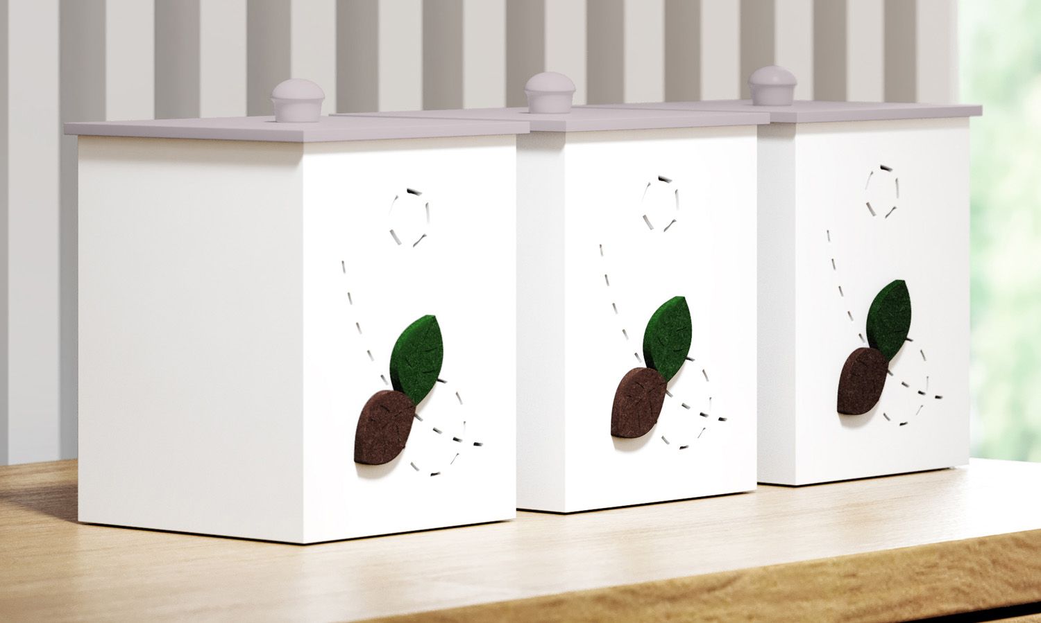 O Jogo de Potes Folhas Safári Baby confere mais praticidade à rotina dos pais e originalidade à decoração do quarto de bebê. Fácil de combinar com diversos estilos e temas.