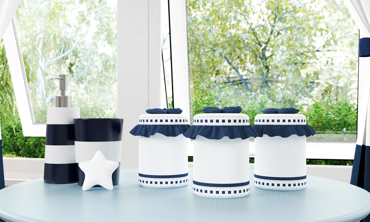 Você vai se apaixonar pela delicadeza desse Jogo de Potes! Confeccionado com tecido branco, esse conjuntinho da Coleção Urso Aviador conquista o coração de mamães e papais quando o assunto é organização! São três potinhos plásticos, enfeitados com babadinhos, passa-fita e singelos lacinhos, para armazenar os produtinhos de higiene do pequeno, como algodão, gaze e cotonetes. Assim, ele otimiza o espaço do cantinho, auxilia a família e ainda coroa a decoração do quarto de bebê!