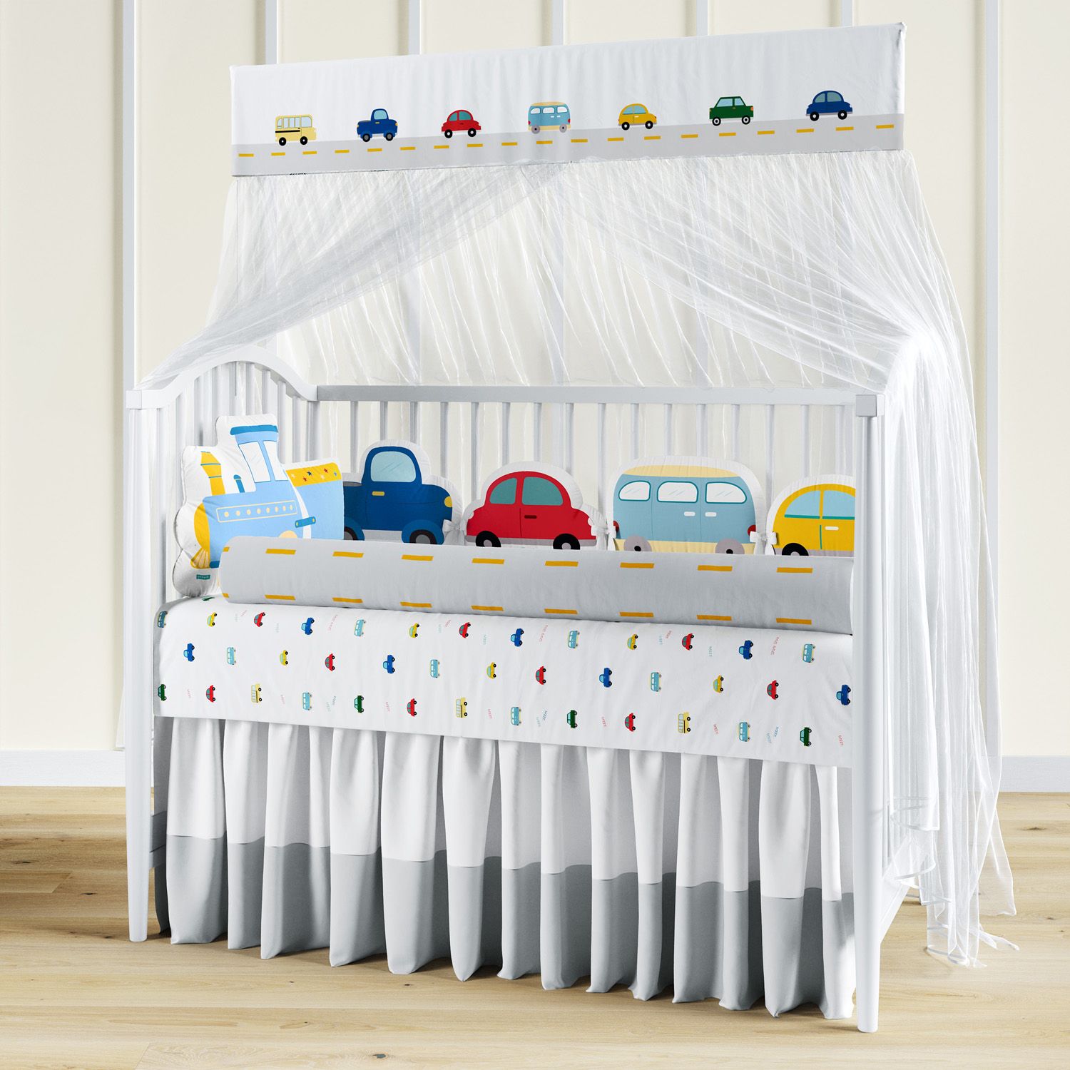 O Kit Berço Amiguinhos Carrinhos Coloridos chegou para ressignificar um dos temas favoritos dos pequenos! Com estampas exclusivas em alta definição para compor o enxoval de bebê e a decoração do quartinho, as peças vão receber o novo menino da família com um toque de diversão! A cabeceira e as almofadas laterais trazem um tema lúdico e sempre atual com diversos tipos de meios de transporte. Confira os detalhes e encante-se com esse produto original Grão de Gente.