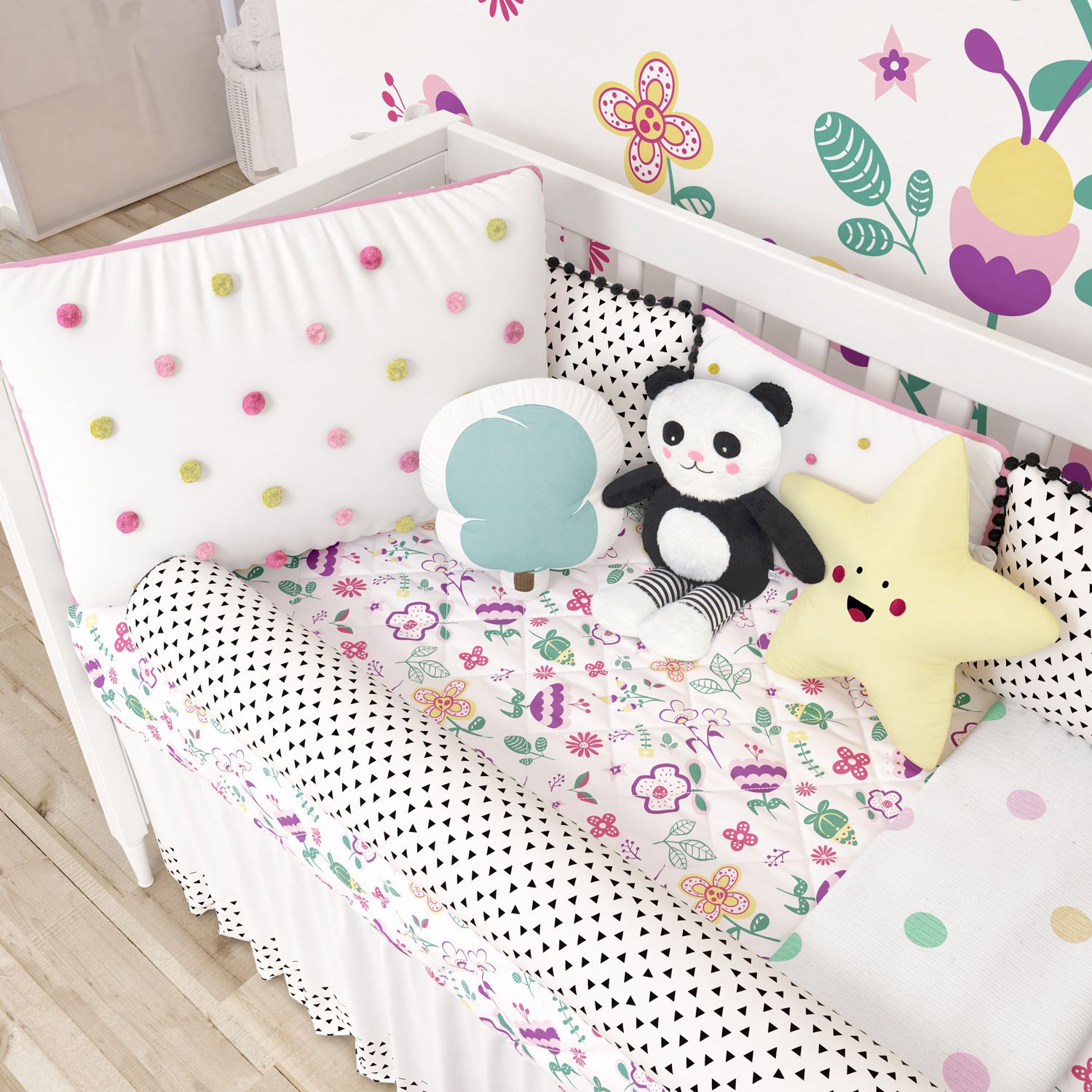 Encanto e conforto nunca é demais para o quarto de bebê, ainda mais quando falamos do apaixonante Edredom Matelado e Estampado Floral Moderna, que faz parte deste lindo enxoval. Ele se destaca no cantinho mais especial da casa graças a estampa florida conquistadora e ao aconchego do tecido matelado, perfeito para aconchegar sua princesinha no bercinho! Os Protetores de Berço são fixados na cabeceira e lateral, além das almofadas laterais com estampa de triângulos. Os protetores e as almofadinhas acompanham zíper que facilita a lavagem para as mamães e papais.