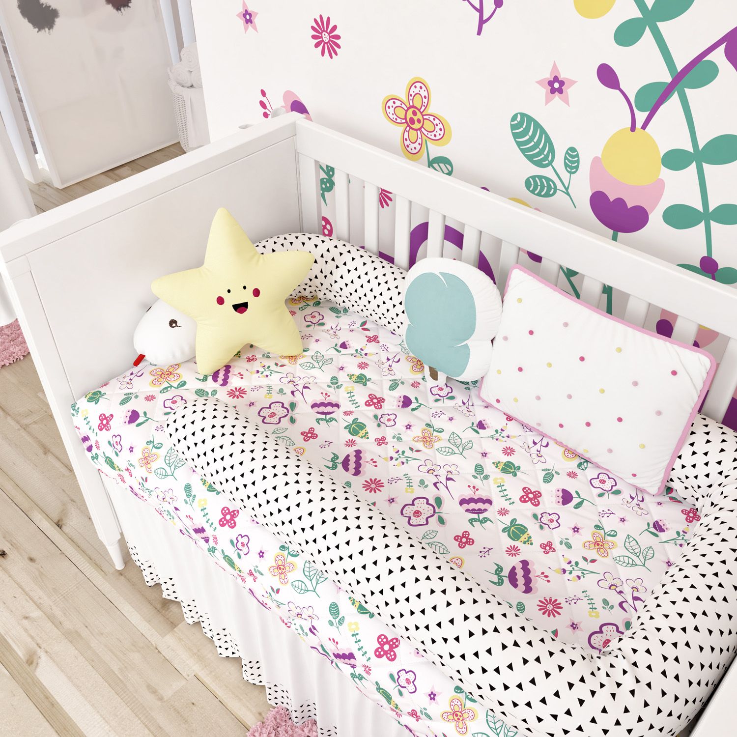 Todo quarto de bebê precisa de um kit berço do jeitinho que as mamães e os papais sempre sonharam! A Grão de Gente sabe disso e apresenta o encantador Kit Berço Floral Moderna, indicado para berço nacional e americano, esse enxoval une a delicadeza e a sofisticação de uma maneira meiga e charmosa!
