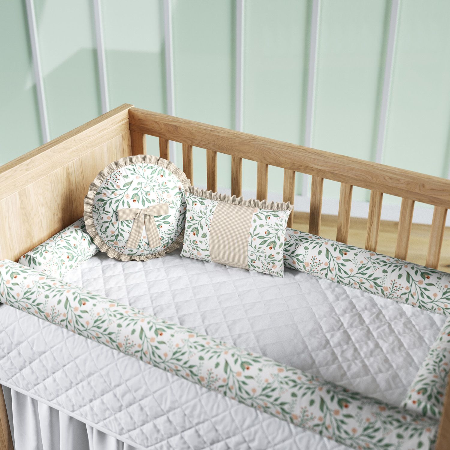 O Kit Berço Rolinhos Folhas do Bosque Verde é a escolha ideal para decorar o quarto de bebê com muito charme e graciosidade!
