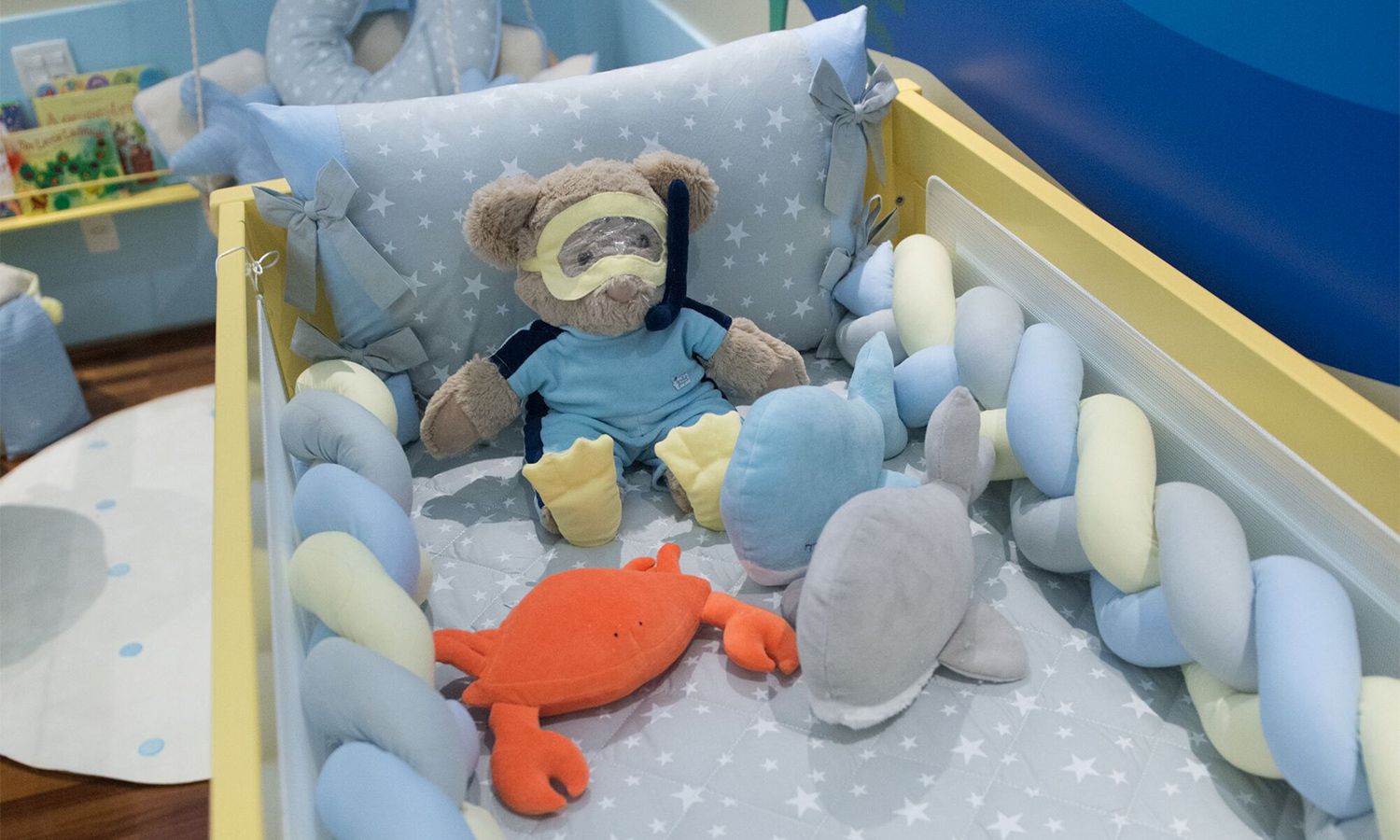 Kit Berço Trança Estrelinhas Amarelo e Azul