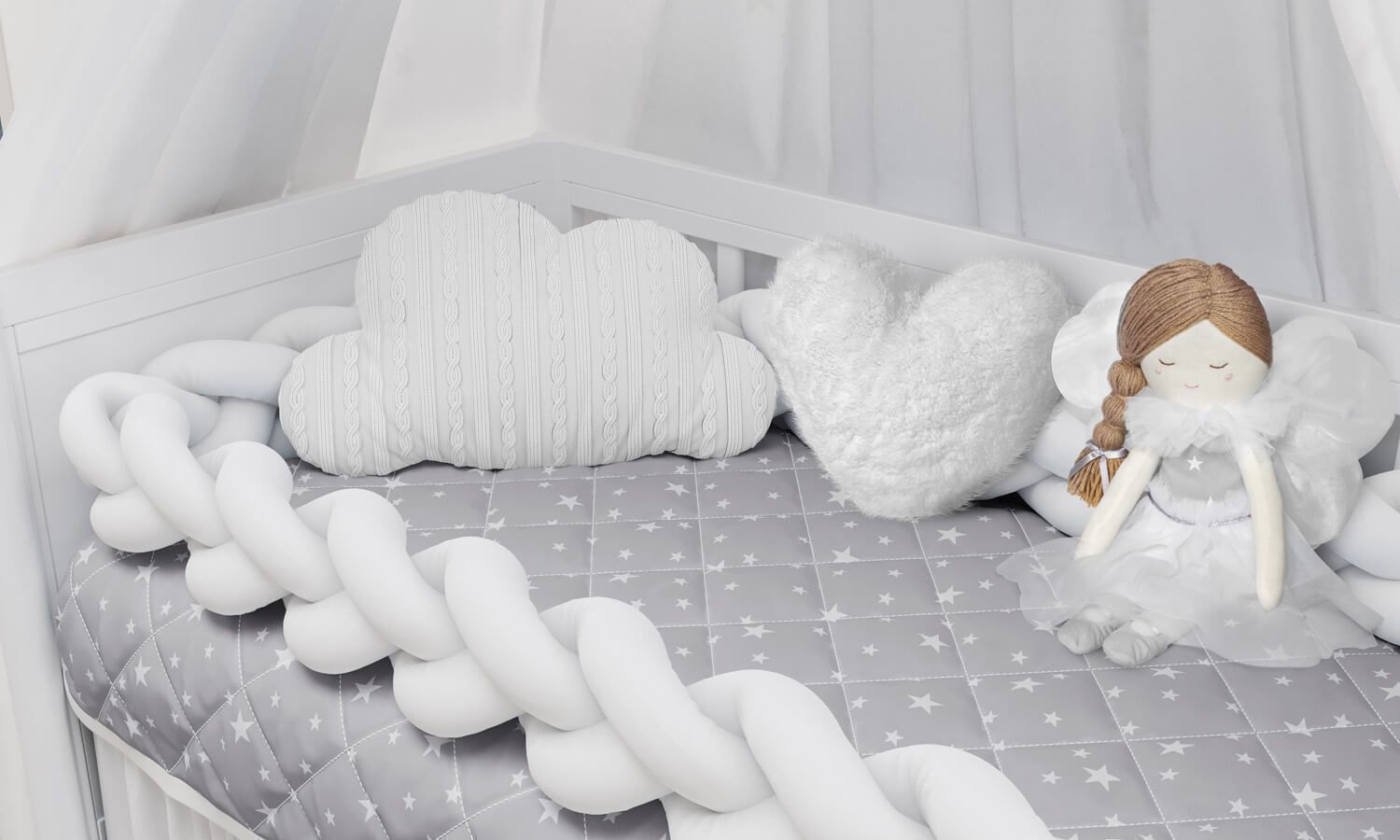 O Kit Berço Trança Estrelinhas Branco faz toda diferença no enxoval do bebê! Ele inclui um aconchegante edredom matelassê estampado e um jogo de lençol percal 100% algodão.