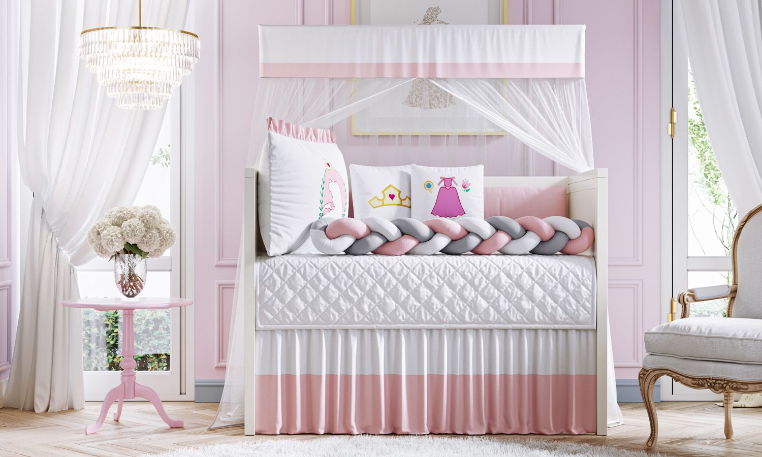 Um sonho! O Kit Berço Princesa Aurora reúne conforto e delicadeza em um conjunto exclusivo da Grão de Gente, maior marca da América Latina em enxoval e decoração para quarto de bebê em parceria com a Disney. Uma composição com tudo o que você precisa para aconchegar a sua menina! São 9 peças confeccionadas com materiais de qualidade e enchimento fofinho que você vai amar. O protetor lateral e a cabeceira com bordado oficial do acervo Disney vêm com zíper, para facilitar a lavagem, e amarril, para fixação no berço. Indicado para berços com padrão americano ou nacional.