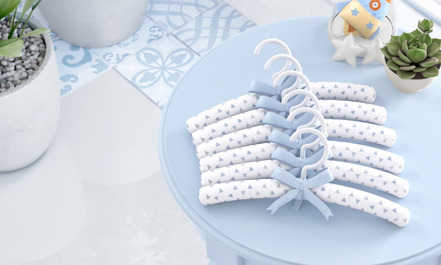 O Kit Cabides Estampa Geométrica Cinza e Azul vai superar as expectativas das mamães por sua delicadeza e funcionalidade. Os seis cabides têm as lindas cores branco e azul que combinam muito bem com o seu príncipe, além de graciosos lacinhos azuis. Seu quarto de bebê precisa desse conjunto para organizar e pendurar as camisetinhas, bermudinhas e todo o lindo enxoval do seu amor!