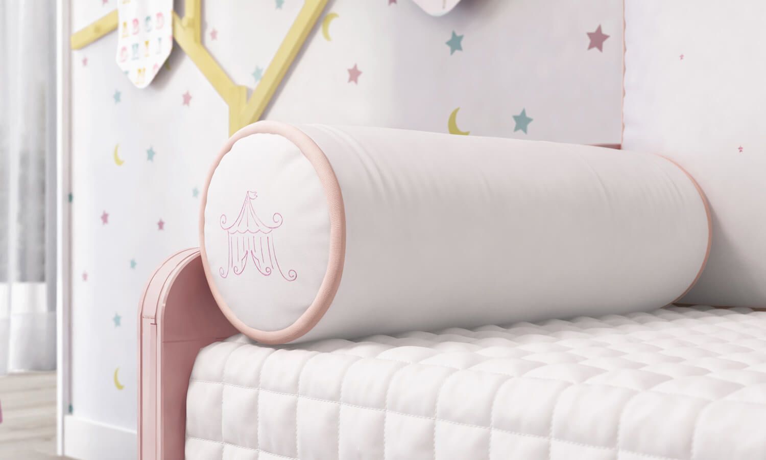 As seis peças transformam a cama babá num cantinho aconchegante que convida para ninar e descansar com todo o conforto do tecido e enchimento macio. O conjunto é composto por uma bela colcha cobre leito matelassê franzidas, além das almofadas bala para as laterais e os encostos, que já vêm com enchimentos e zíper que facilita a lavagem.