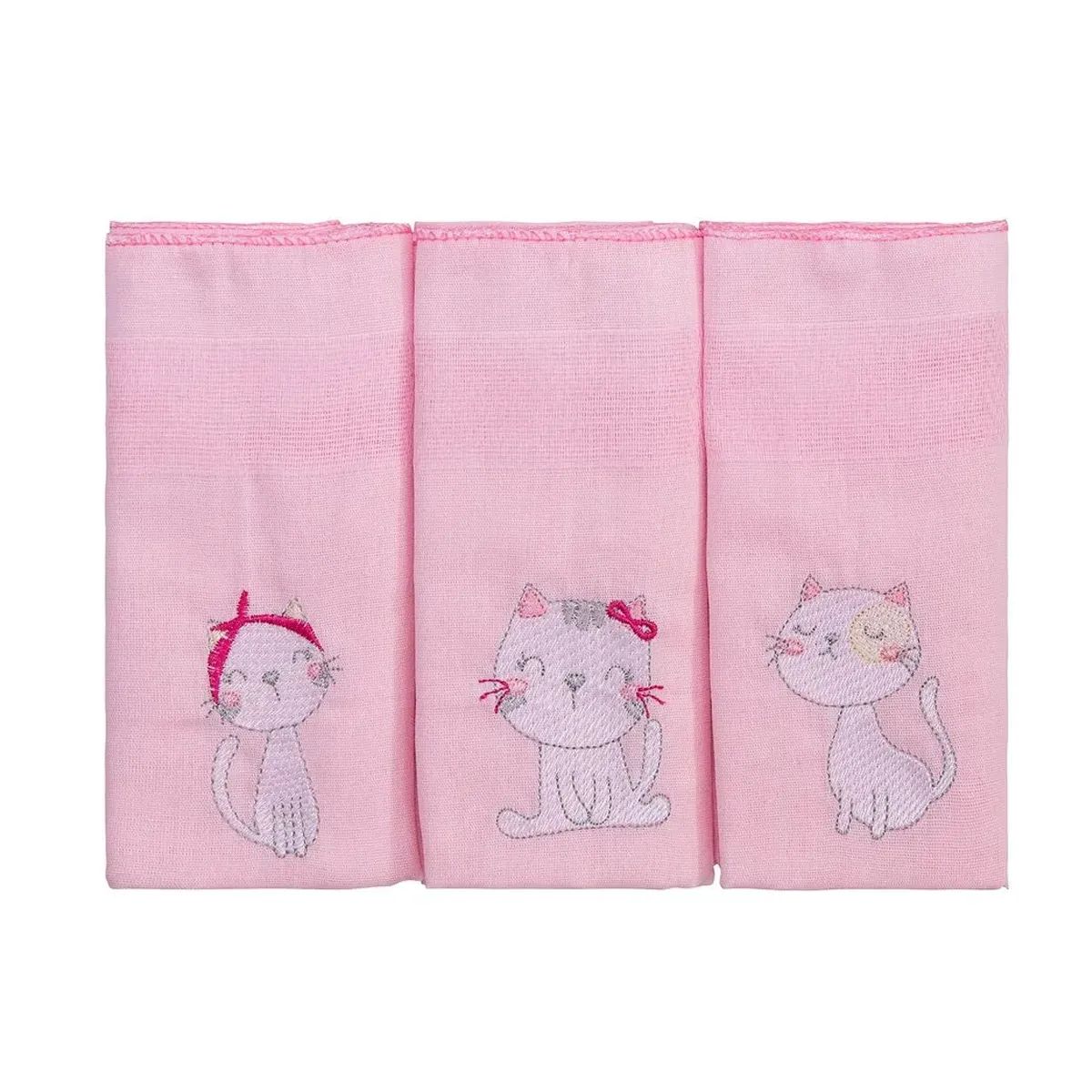 Kit Fralda de Pano Luxo Incomfral Bublim Bordada Gatinha 03 Peças