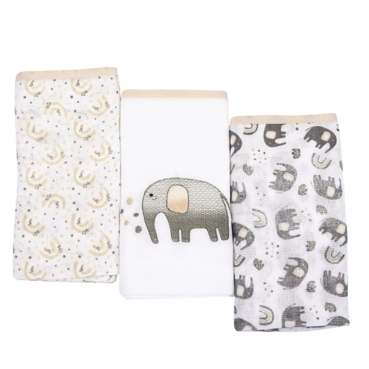 Kit Fralda de Pano Minasrey Composê Elefante 3 Peças