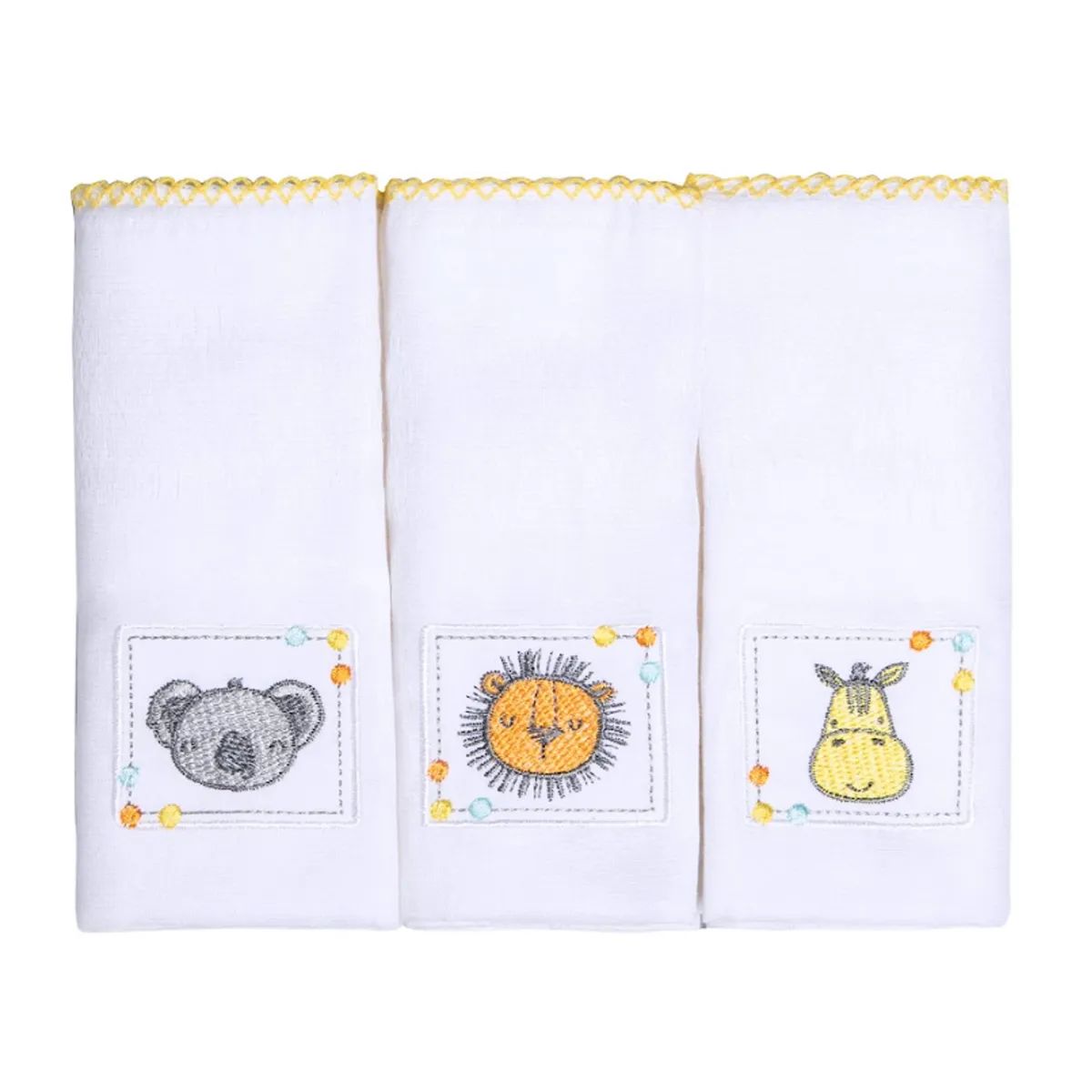 O Kit fralda de pano da linha Bordados Karinho é da Papi. Composto por 03 fraldas confeccionadas em tecido 100% algodão com acabamento em picueta e bordado.