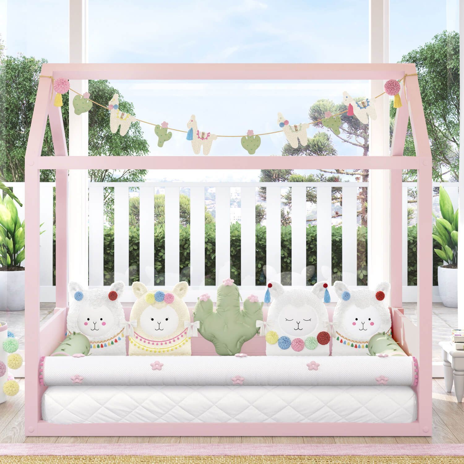 O macio edredom matelassê aquece a neném mesmo nas noites mais frias, enquanto os rolinhos frontal, cabeceira e peseira acompanham zíper que facilita a lavagem e amarril para fixação na cama casinha, tudo num enchimento bem fofinho. As duas Almofadas Lhamas Fitinhas e o trio Almofada Amiguinhas Lhamas Pompom, Bolinhas e Cacto complementam o enxoval com a delicadeza e o encanto característico da coleção. Para finalizar, o lençol de baixo com elástico acrescenta conforto e toca de maneira suave a pele sensível da recém-nascida.