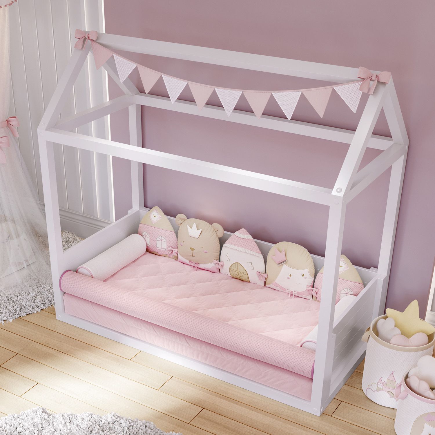 Com protetores fofos e delicadinhos, o Kit Montessoriano Amiguinhas Realeza é o sonho das mamães clássicas atuais. São 11 peças para levar conforto e diversão para o quarto de bebê: edredom matelado, três rolinhos, lençol de elástico, cinco almofadinhas e varal decorativo.