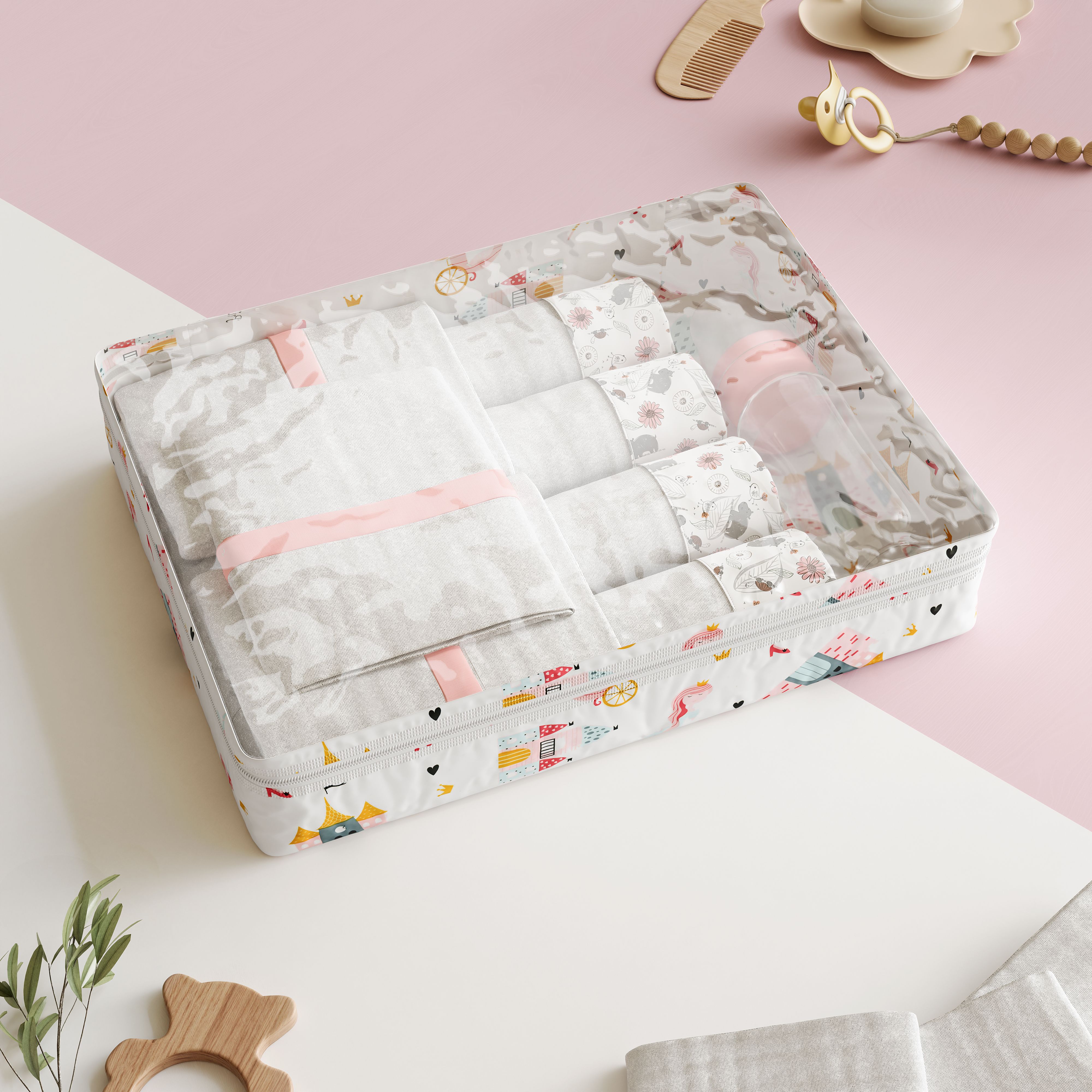 O Kit Organizador de Mala Princesa é um conjunto pensado para otimizar a rotina da família na organização do enxoval de bebê.