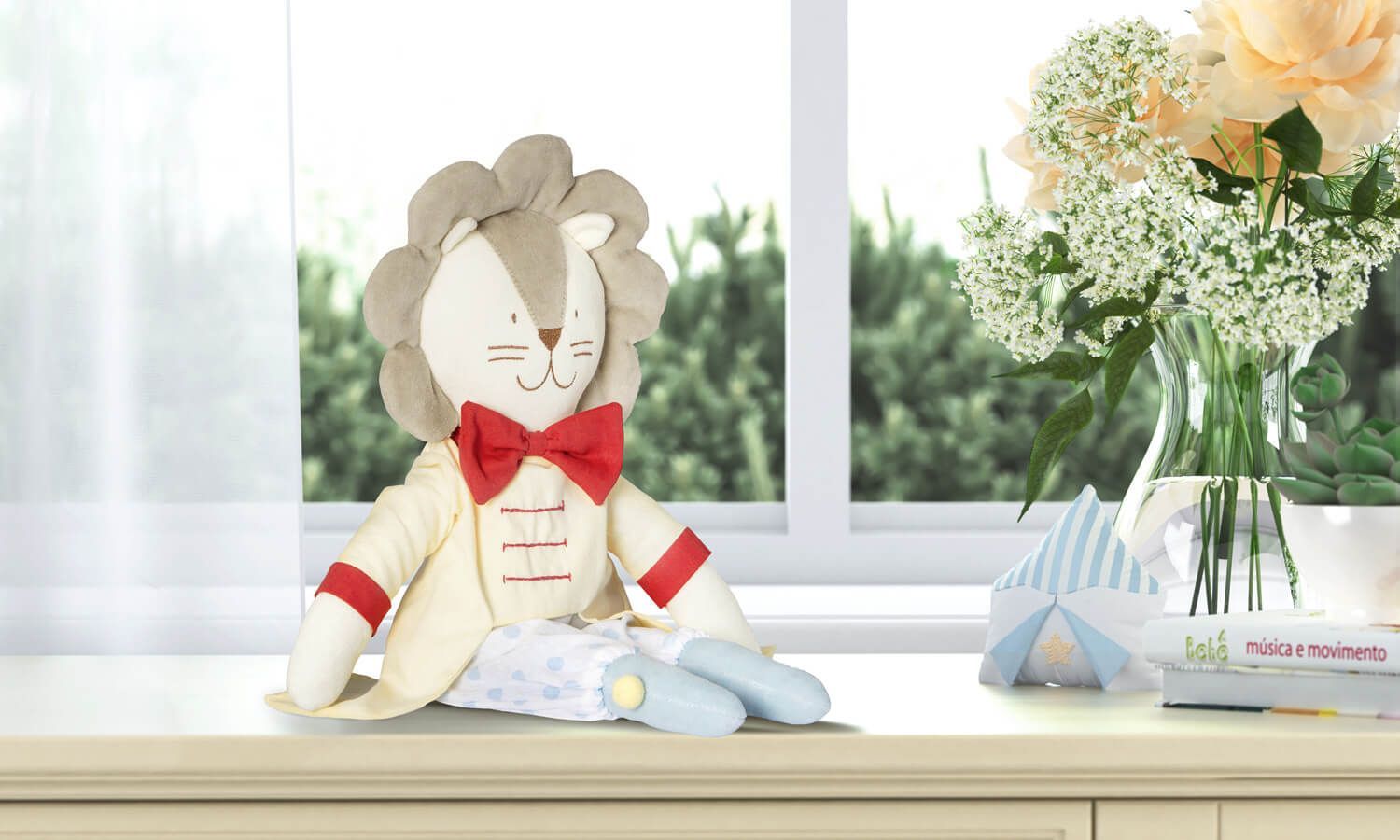 Diversão garantida! Além de compor um ambiente lúdico com criatividade e aconchego, o Leão Mágico do Circo Mimo Azul 48cm aparece para completar a decoração do quarto de bebê com uma proposta super meiga! Esse simpático leãozinho confeccionado com o aconchego do tecido plush veste um traje completo, com direito a cartola, gravata e a parte de baixo com uma estampa charmosa. O rostinho bordado finaliza com elegância essa peça repleta de detalhes em tons suaves. Ótima companhia para brincar e tornar o décor mais afetivo, além de proporcionar momentos especiais para o seu amor.