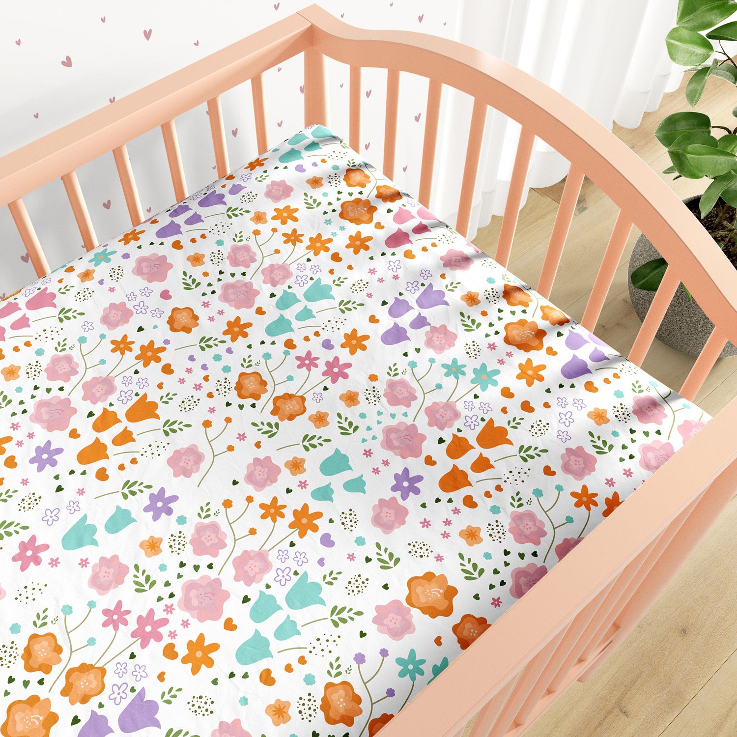 Lençol Berço com Elástico Buquê de Flores Colorido