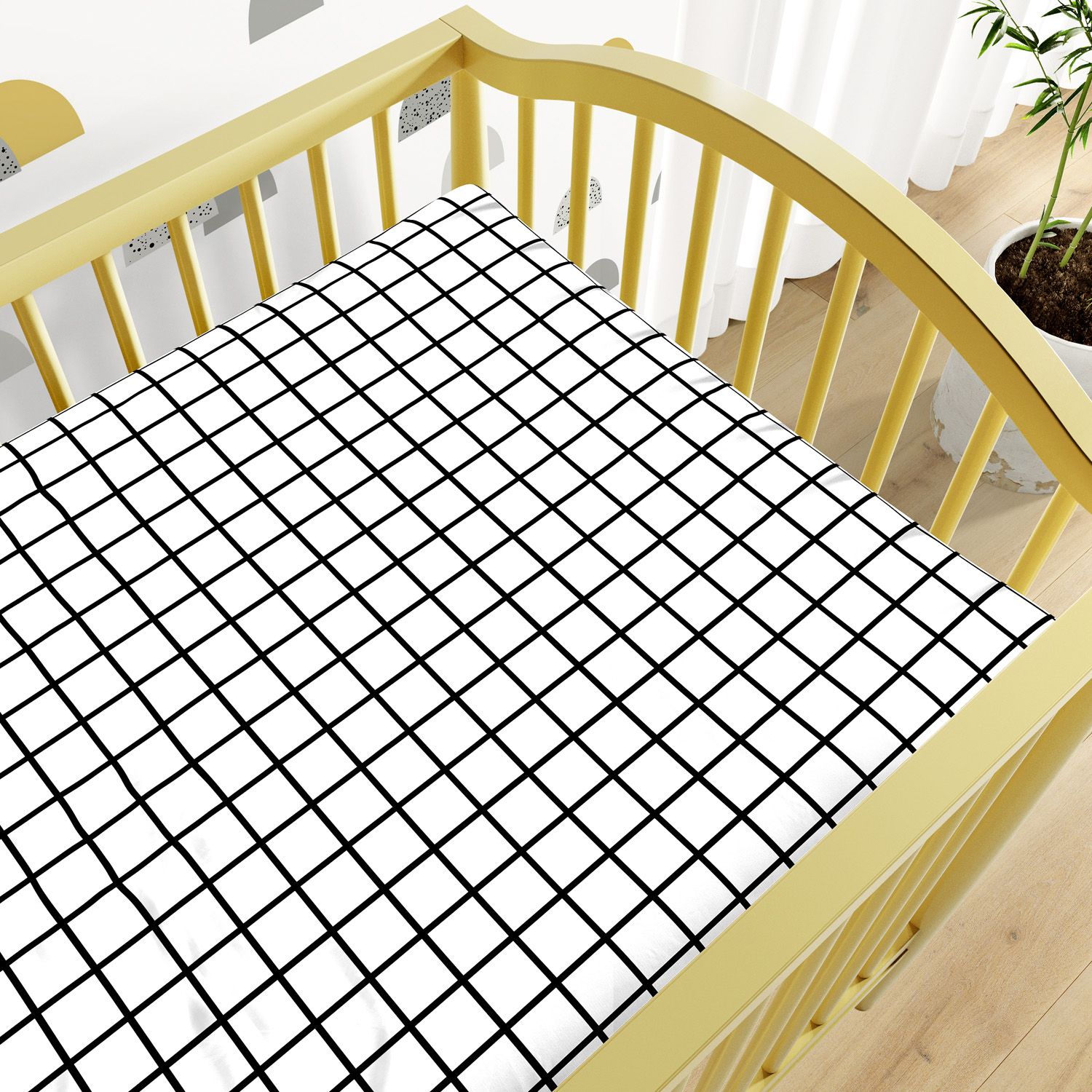 Lençol Berço com Elástico Quadriculado Preto e Branco