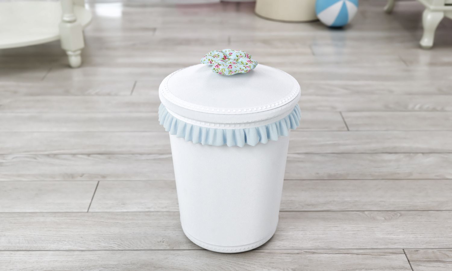 Auxiliar na organização do quartinho e manter o ambiente sempre elegante é função da Lixeirinha da Coleção Fada! O acessório ajuda as mamães nos cuidados com a pequenina e traz ainda mais capricho ao enxoval da sua princesa com um design romântico e super feminino! Revestida com tecido branco branco, a peça descarta embalagens, algodão, cotonetes e fraldinhas sem que você precise sair do cantinho da troca, garantindo um ambiente arrumado e gracioso. Babadinhos azuis e um meigo lacinho com estampa floral enfeitam esse modelo exclusivo e sofisticam a decoração do quarto de bebê, tudo com uma harmonia de cores suaves e delicadas. Aproveite e confira o Kit Higiene para um enxoval ainda mais completo!