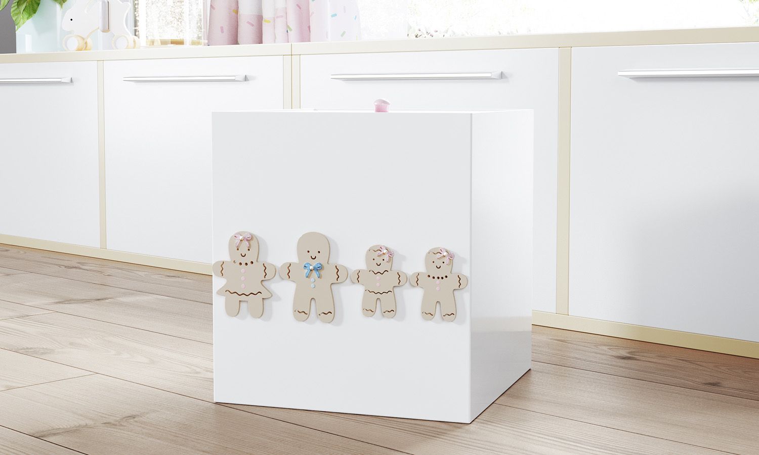 A Lixeira Família Biscoito Doce Encanto vai trazer ainda mais praticidade para a rotina de cuidados do bebê. Esse lindo acessório é ideal para descartar pequenas embalagens, algodão, cotonetes e fraldinhas da pequena. Essa lixeirinha branca com tampa rosa também embeleza o quarto de bebê com o toque lúdico da família de biscoitinhos aplicados no acessório.
