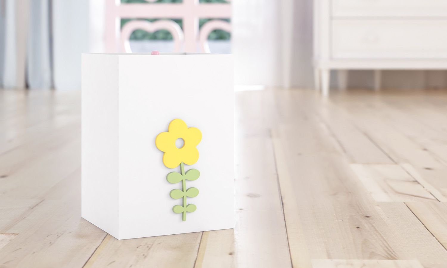 As cores branco, rosa, verde e amarelo são a cara de um quarto de bebê como você sempre sonhou! Melhor ainda se essas corzinhas tão delicadas estiverem unidas a funcionalidade da Lixeira Floral Moderna. Indispensável no cantinho mais meigo da casa, essa lixeirinha confeccionada com madeira 100% MDF é o acessório ideal para as mamães e os papais dispensarem embalagens, algodão, lencinhos e fraldas. Outro destaque são as florzinhas aplicadas que dão todo um charme para mais esse produto Grão de Gente!