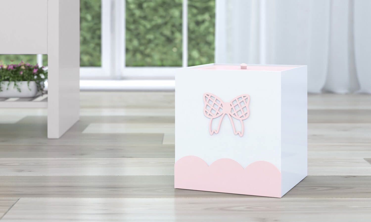 Todo quarto de bebê precisa de um lixinho para descartar aquilo que não pode mais ser aproveitado. A Lixeira Lacinho da coleção Princesa Clássica torna o dia a dia das mamães e papais mais funcional. Ela é espaçosa e tem um design meigo que encanta a todos, com um lindo lacinho rosa aplicado em madeira 100% MDF, o mesmo material utilizado em toda a sua estrutura.