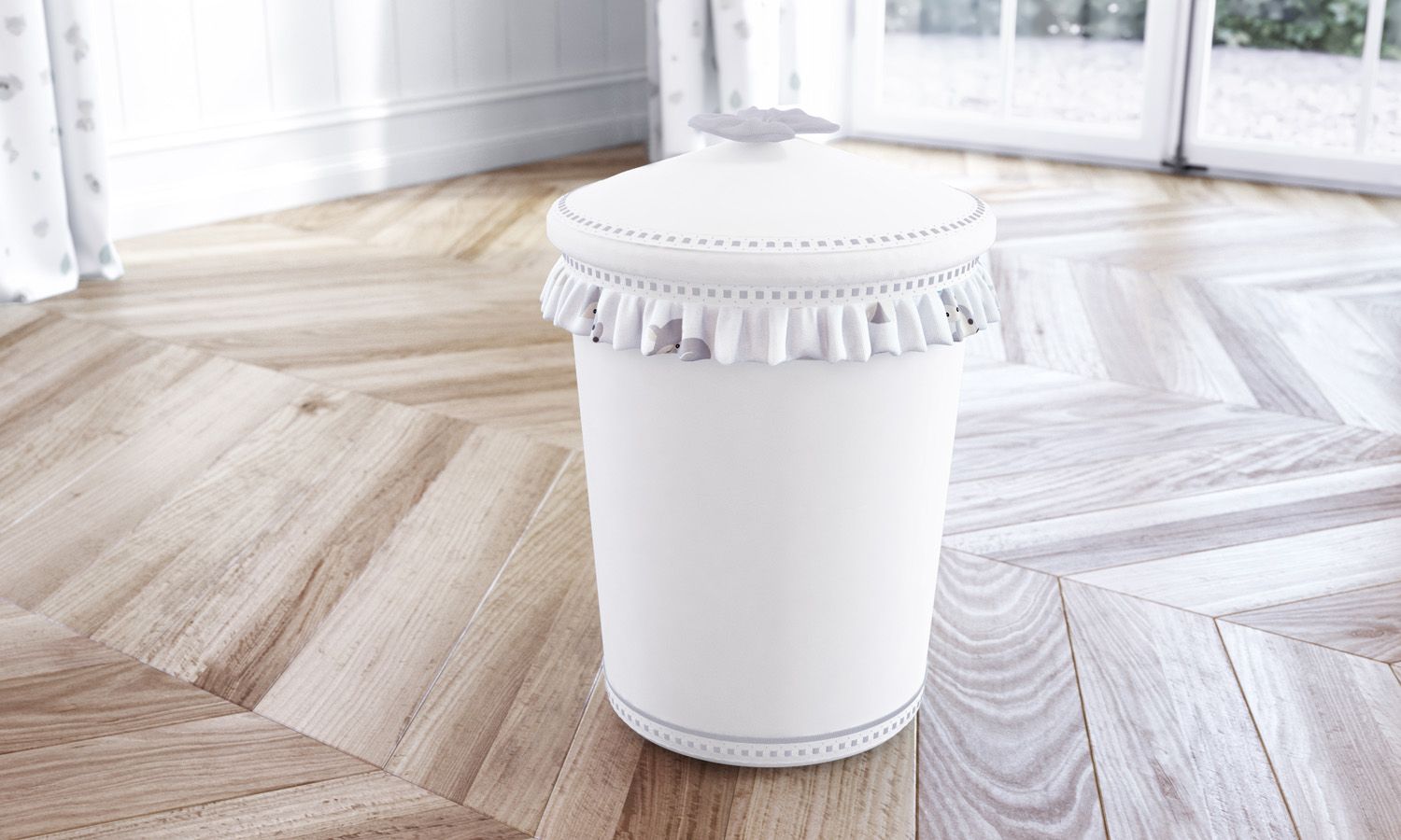 Todo quarto de bebê precisa de diversos acessórios para receber seu amor de uma maneira muito especial, com bastante aconchego para o pequeno e praticidade para as mamães e papais. A Lixeira Raposinha Cinza tem um design com muito gracioso. Sua estrutura de plástico é resistente, já os babados e a aplicação de lacinho também chamam atenção pelo charme. O destaque é a sua funcionalidade, pois é perfeita para as mamães e papais descartarem fraldinhas, lencinhos, embalagens e muito mais, ideal para o quarto de bebê dos sonhos!