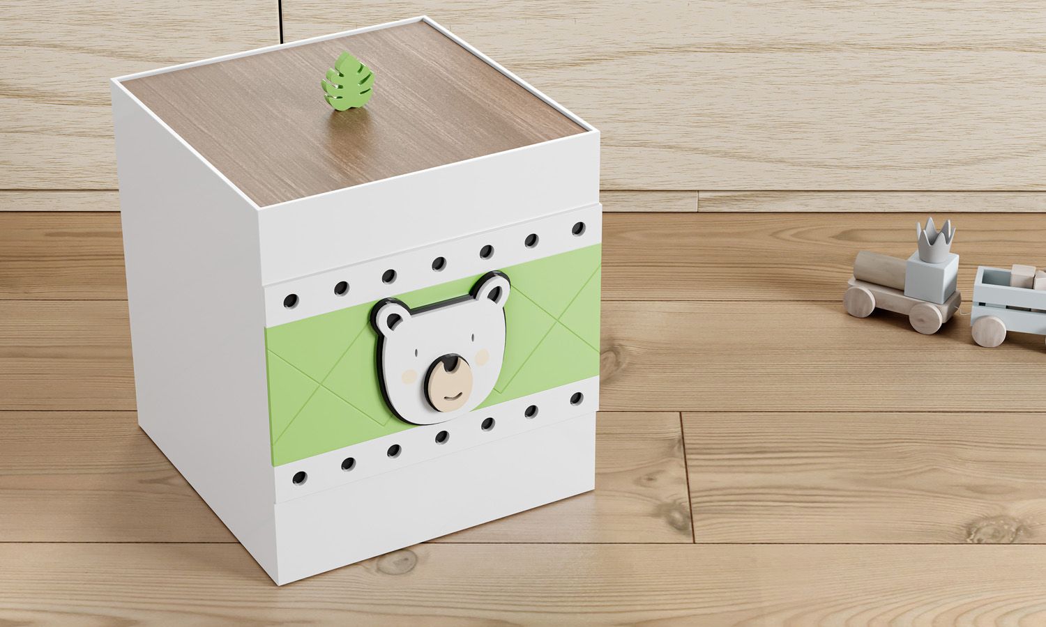 Um acessório indispensável e que completa a decoração do quarto de bebê. Produzida em madeira 100% MDF, a Lixeira Urso Amiguinhos da Floresta traz aplique de ursinho em relevo e uma charmosa tampa amadeirada para finalizar o décor com um clima de safári moderno.