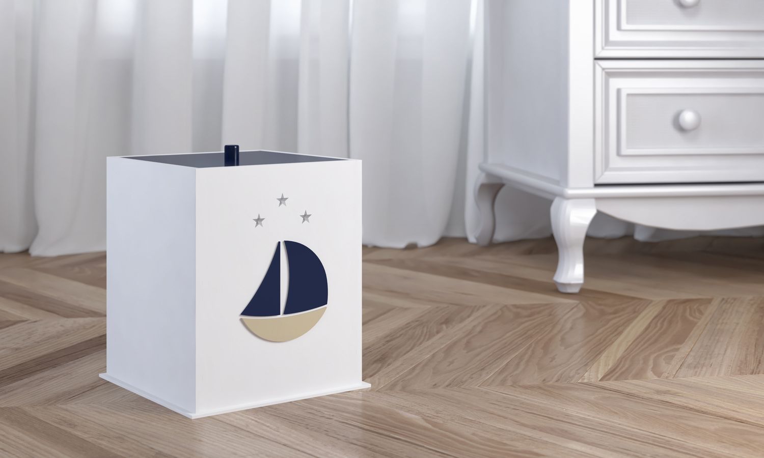 Quarto de bebê organizado é sinônimo de mamãe tranquila! Prática, a Lixeira Urso Marinheiro facilita a rotina de cuidados e mantém o cantinho de menino sempre elegante. Feita de madeira MDF, a peça é ideal para descartar pequenas embalagens, algodão, cotonetes e até as fraldinhas do neném. Esse modelo exclusivo ganhou detalhes vazados de estrelas e o sofisticado barquinho de madeira, que harmoniza bege e azul-marinho