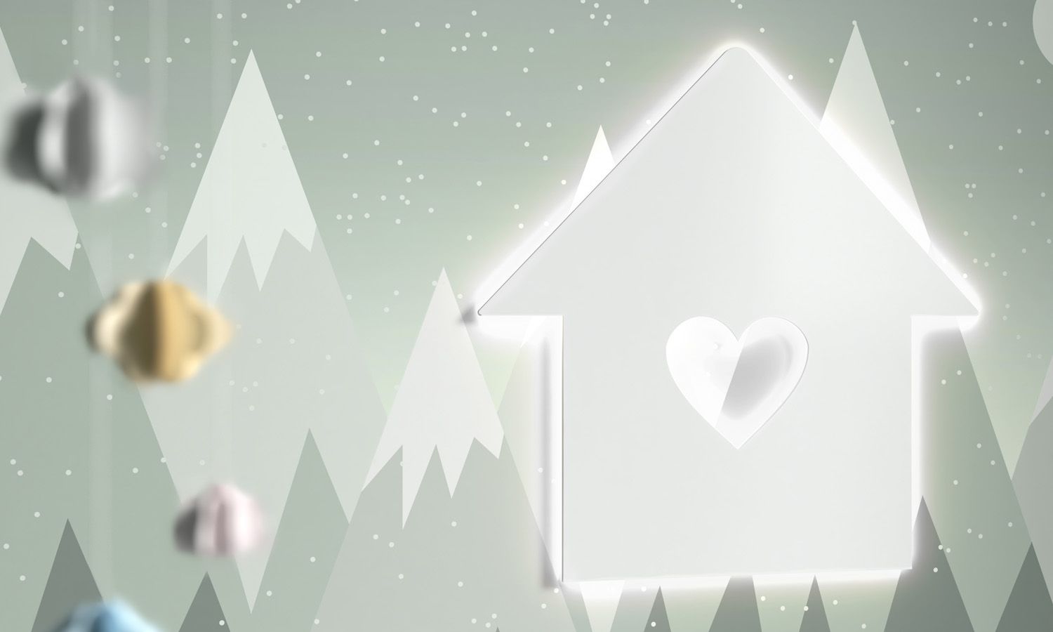 A luz da Luminária de Parede Casinha cheia de amor resplandece no quartinho do bebê!