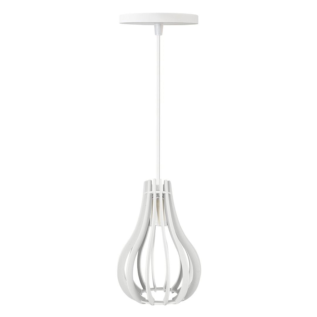 Produzida em MDF, a luminária se destaca pelo seu design elegante com detalhes vazados e acabamento de pintura laqueada.