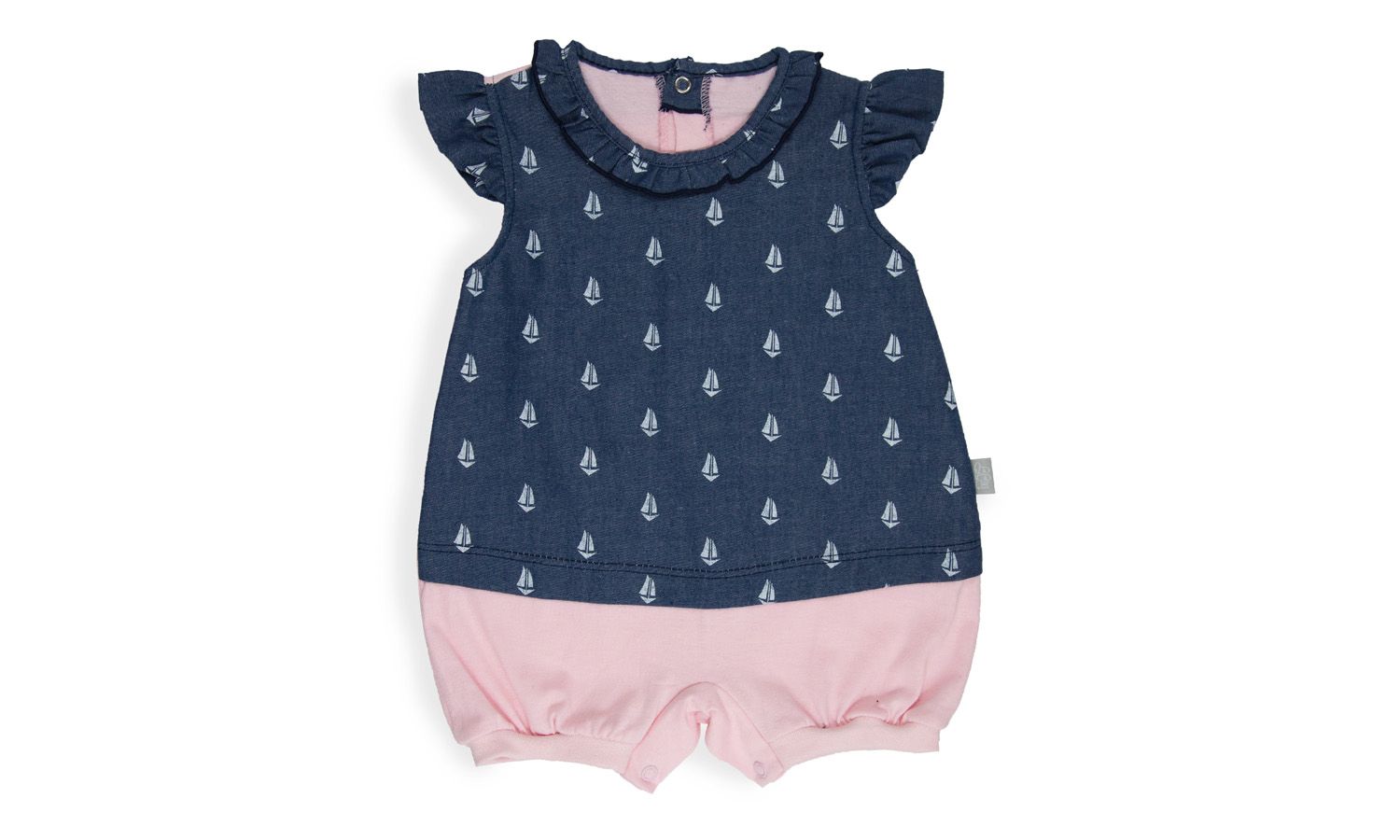 O Macacão Curto Barquinho Rosa traz uma tendência elegante para vestir a sua menina nos dias de sol.