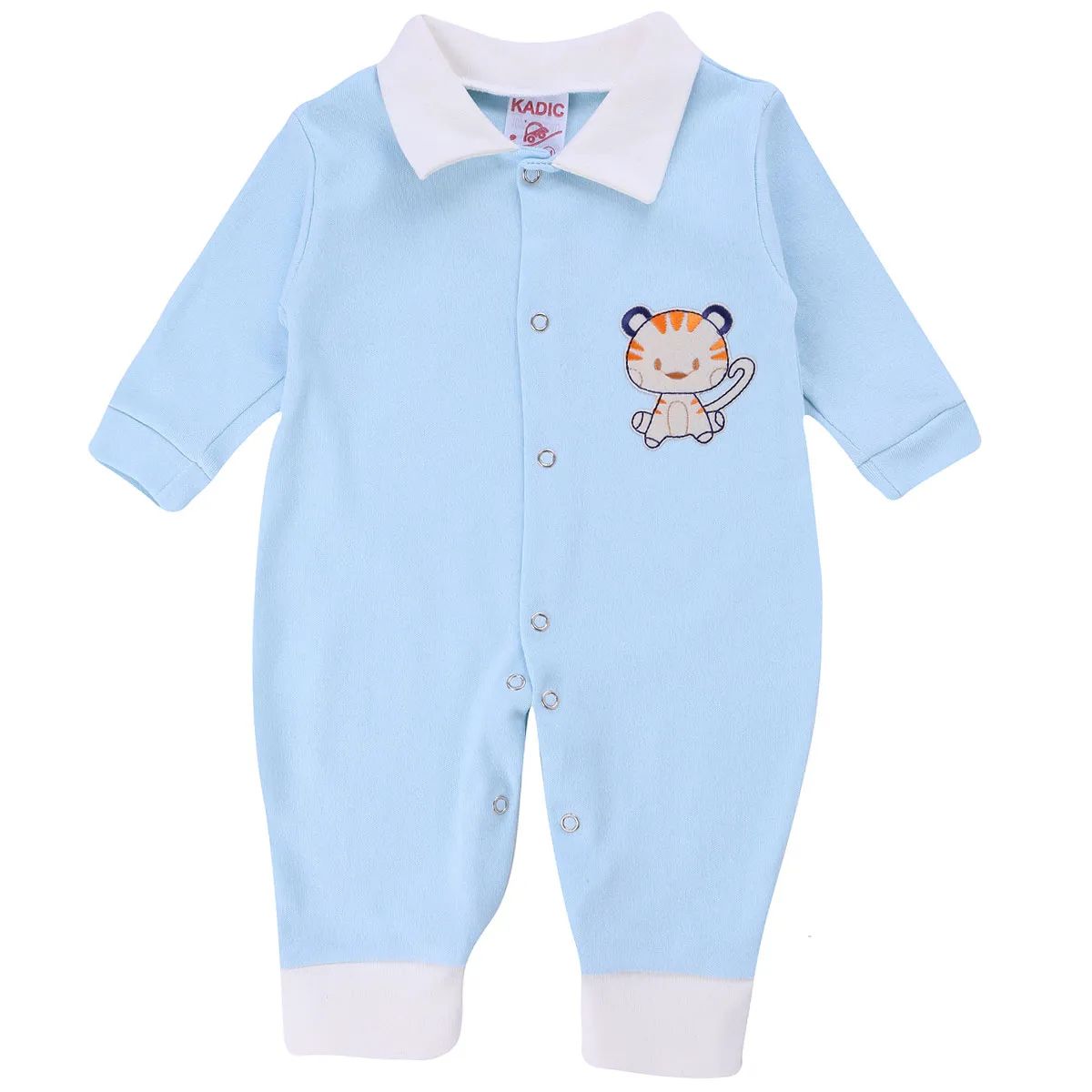 Macacão longo Kadic ideal para bebês de 0 á 12 meses, confeccionado em suedine e bordado sortido. Possui fecho por botões de pressão.