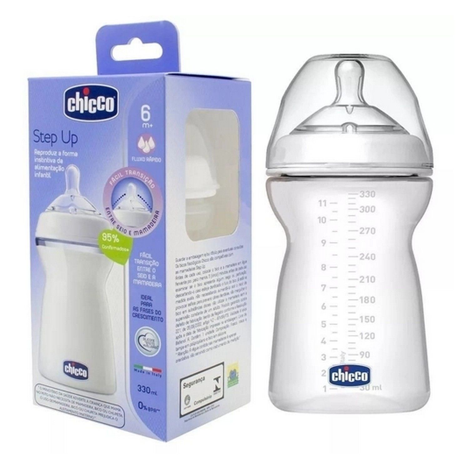A Mamadeira Step Up Fluxo Rápido 330ml 6+ Chicco é uma excelente escolha para as famílias que buscam uma opção funcional para oferecer leite e outros líquidos para o bebê.