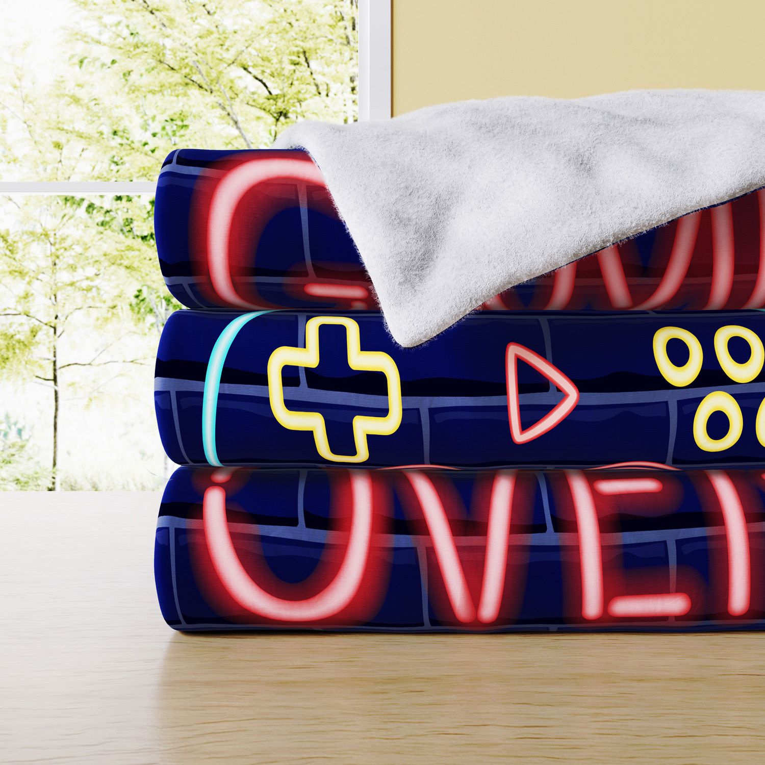 Dica: Conheça também o Kit Cama Infantil e as almofadas da coleção para completar a decoração do Quarto Gamer. (vendidos separadamente)