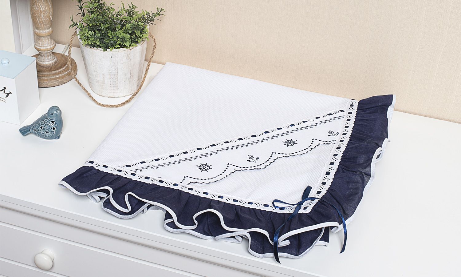 A Manta Leme Marinho traz um toque clássico ao enxoval de bebê! Confeccionada com a maciez do algodão, a peça bordada com babadinhos e passa fita de cetim atualiza a definição de elegância! Perfeita em todas as estações, essa mantinha pode ser utilizada em passeios, festas, no carrinho e para as melhores sonecas. Opção ideal para presentear com graça e beleza.