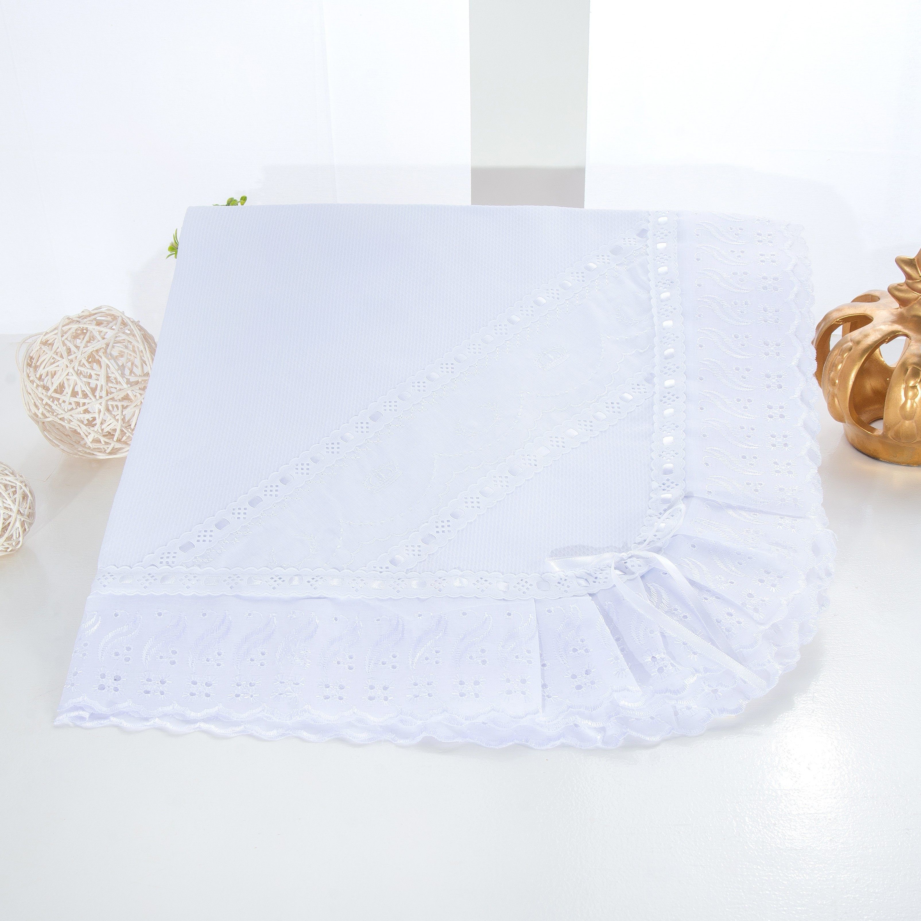 * Babado em Bordado Inglês com Passa Fita de Cetim.