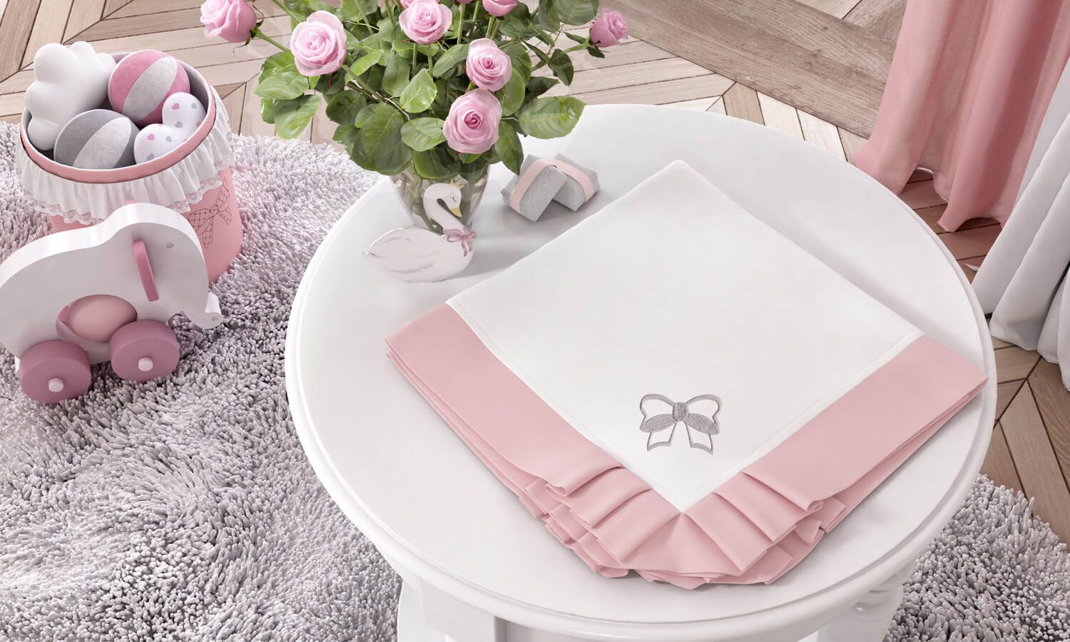 A Manta Princesa Clássica aquece seu amor mesmo nas estações mais frias do ano. Seu visual conta com um delicado lacinho bordado, enquanto seu tecido 100% algodão proporciona aconchego e muito bem-estar no bercinho. As cores branco e rosa foram escolhidas para dar um toque de romantismo ao quarto de bebê da nova princesinha da família!