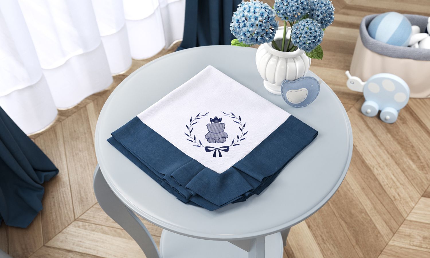 Manter o bebê quentinho e sempre elegante é uma tarefa para a Manta Ursinho Clássico Marinho! Ela é perfeita para aquecer o neném na medida certa e brilhar nos passeios, festinhas e reuniões na casa dos amigos e familiares. Esse acessório leve é produzido com tecido 100% algodão e rouba a cena com um delicado bordado de ursinho e detalhe xadrez na borda. Conheça todos os produtos do enxoval Ursinho Clássico Marinho e aposte nesse mimo como um presentinho especial para celebrar a chegada do novo príncipe da família!