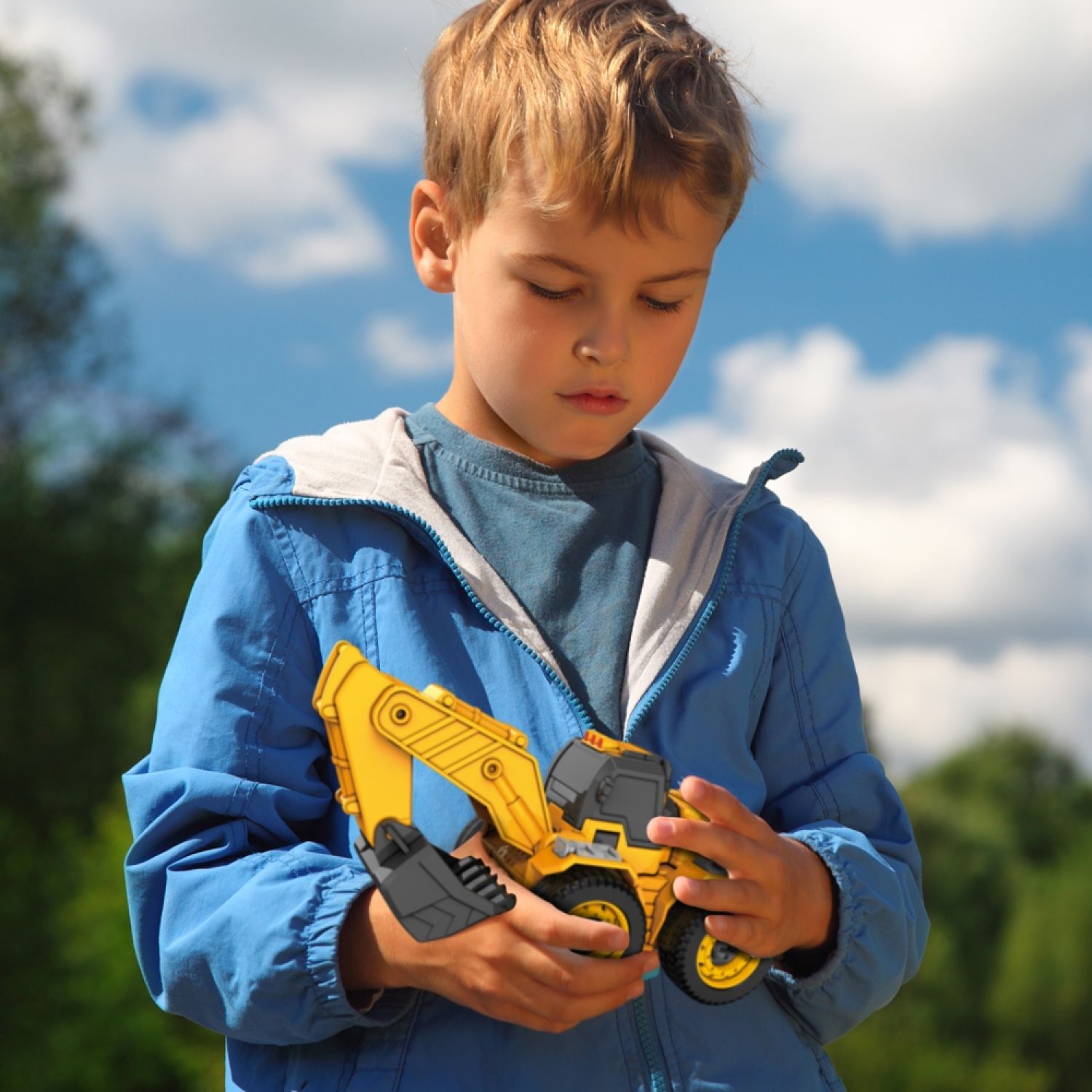 Um brinquedo 2 em 1, podendo ser uma super escavadeira ou um robusto robô, a criançada vai adorar! Para o acessório se transformar, basta usar a chave de fenda já inclusa e girar seus parafusos e assim transformar a escavadeira em robô ou vice e versa.