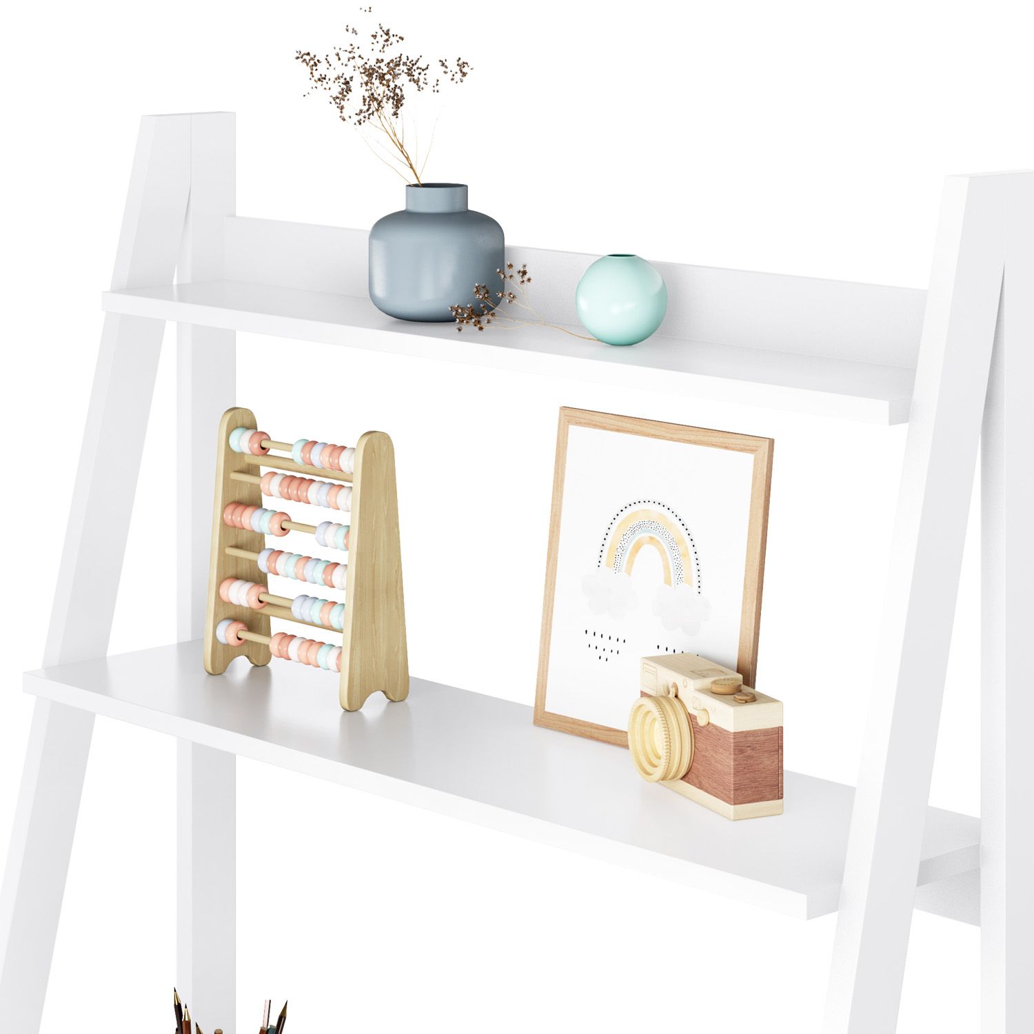A Escrivaninha Estante Branco é prática e pode ser colocada no cantinho para fazer as atividades escolares e aproveitar momentos de leitura enquanto os bichinhos de pelúcia e itens decorativos são acomodados nas prateleiras. Confira todos os detalhes: