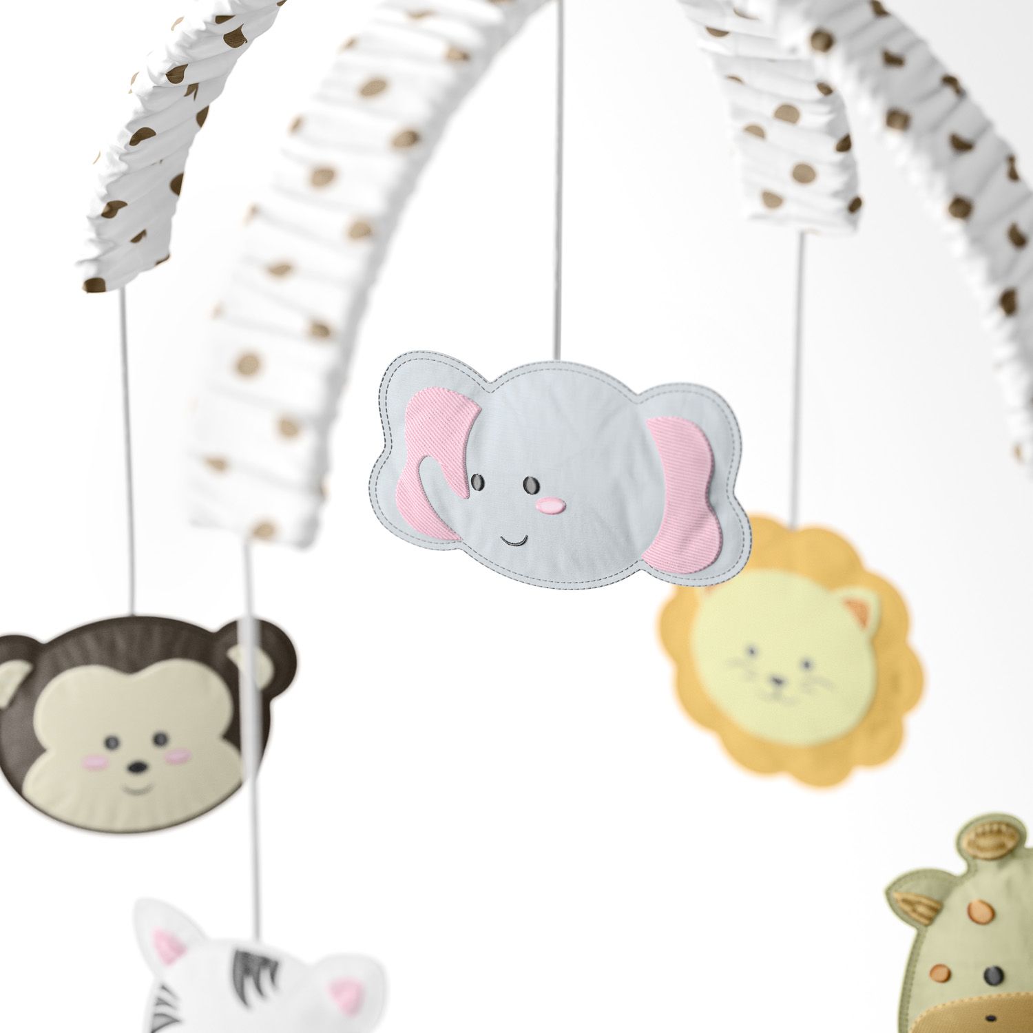 O Móbile Amiguinhos Safári Poá Bege é um acessório lúdico e com um toque extra de fofura para compor a decoração do quarto de bebê!