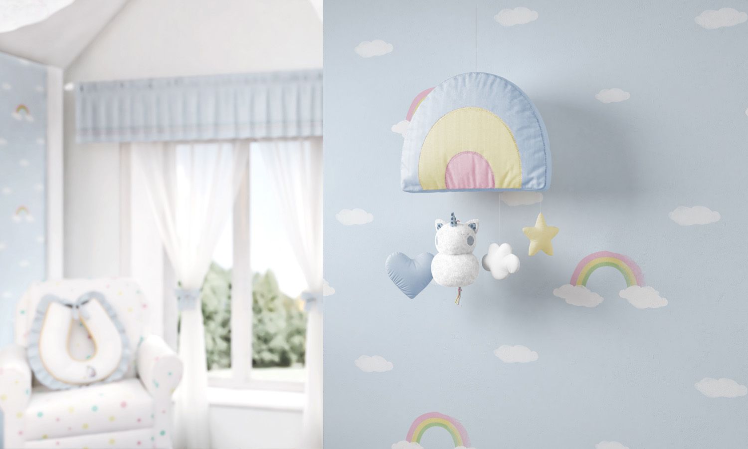 O Móbile Arco-Íris Amiguinhas Unicórnio é pura fofura e vai estimular a imaginação do seu bebê com formas, cores e movimentos! Esse modelo exclusivo Grão de Gente é composto por um suporte e móbiles de coração, nuvem, estrela e unicórnio, prontos para encantar a sua princesinha. O movimento das peças presas por uma argola vai entreter a pequena dentro do bercinho, enquanto a paleta de cores tranquiliza graças a combinação suave das cores rosa, branco, amarelo e verde. Seu design lúdico tem influência do estilo montessoriano, que incentiva o estímulo da imaginação e criatividade do seu amor!