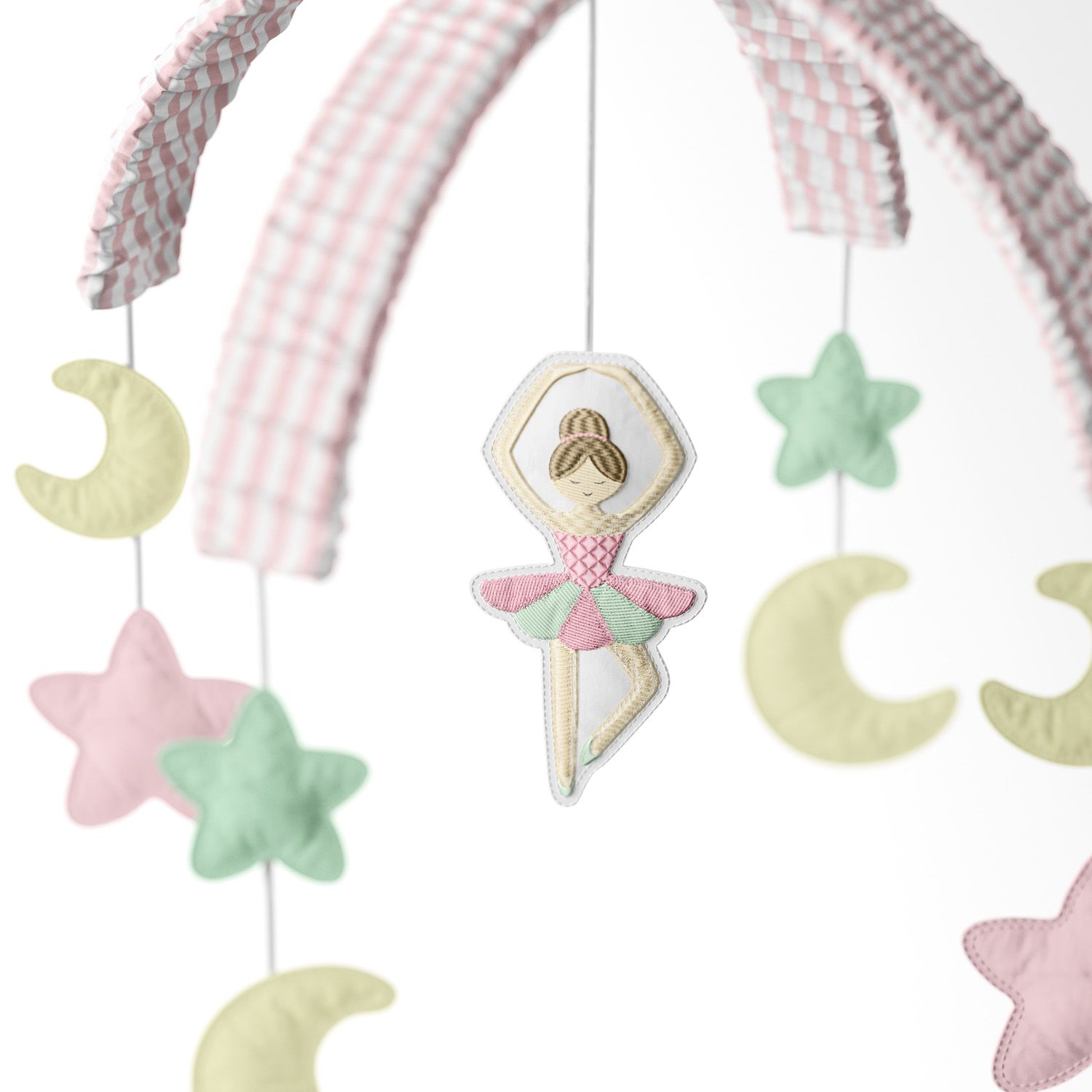 O Móbile Bailarina é um acessório lúdico e com um toque extra de fofura para compor a decoração do quarto de bebê!