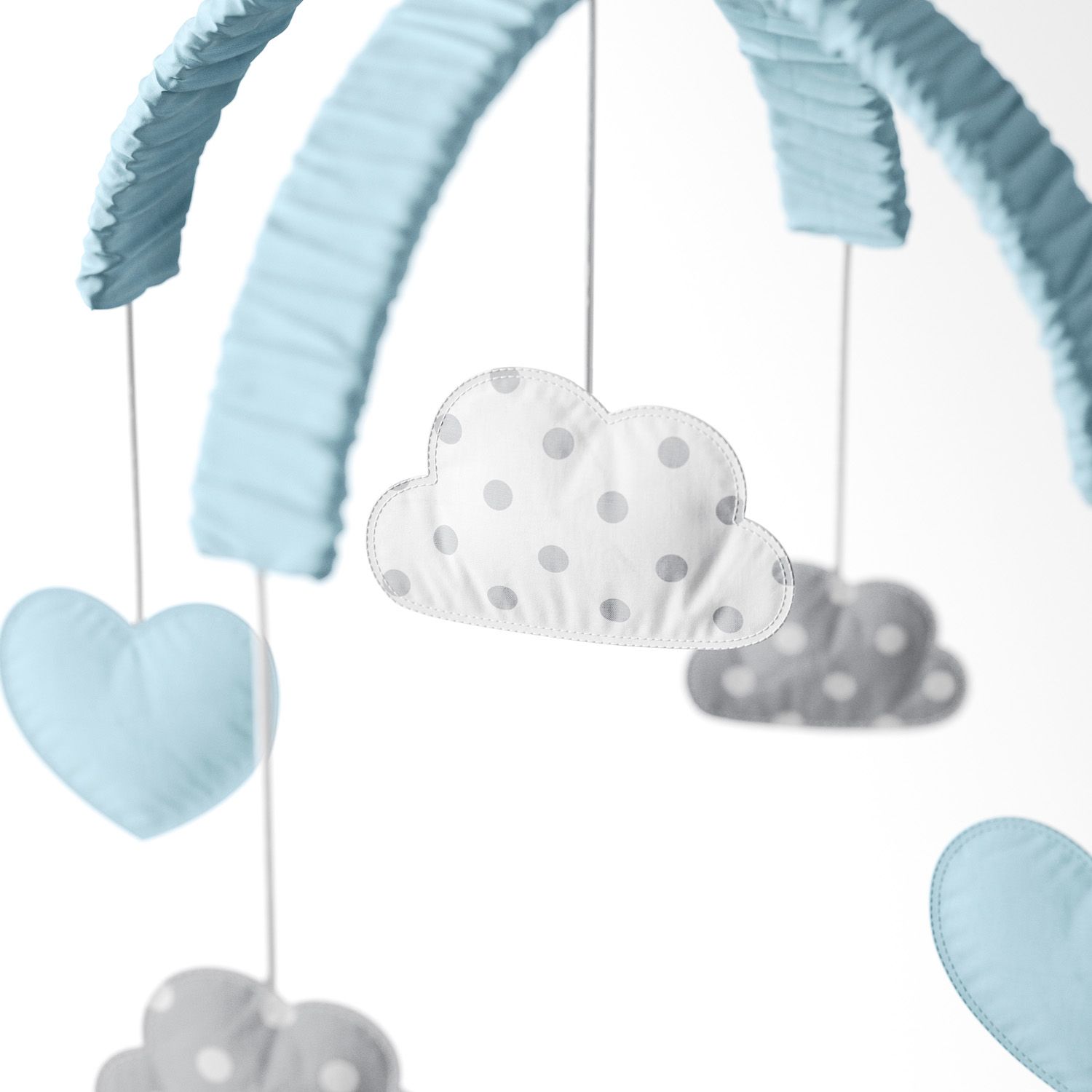 O Móbile Coração e Nuvem Poá Azul Bebê é um acessório lúdico e com um toque extra de fofura para compor a decoração do quarto de bebê!