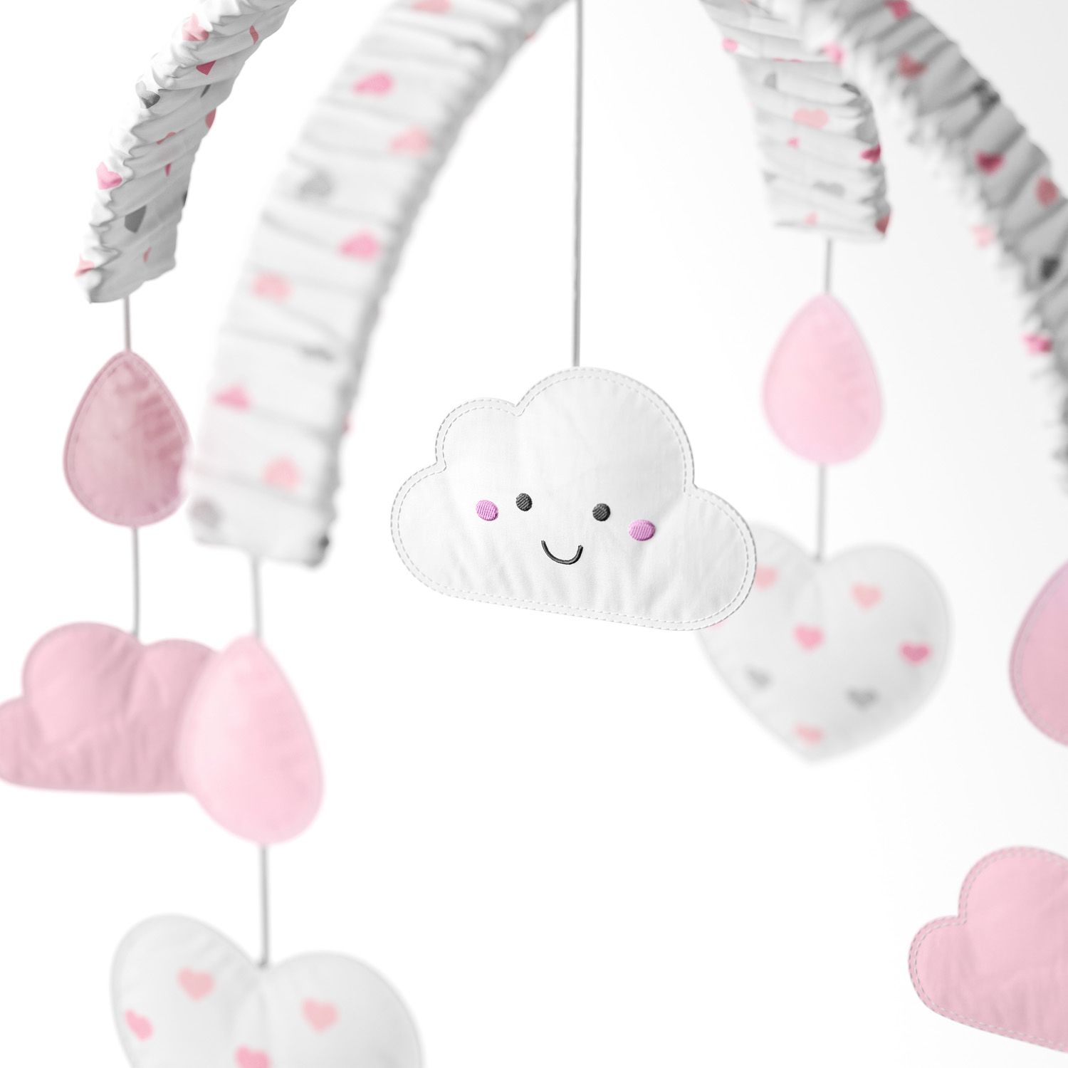 O Móbile Nuvem Coração Rosa é um acessório lúdico e com um toque extra de fofura para compor a decoração do quarto de bebê!