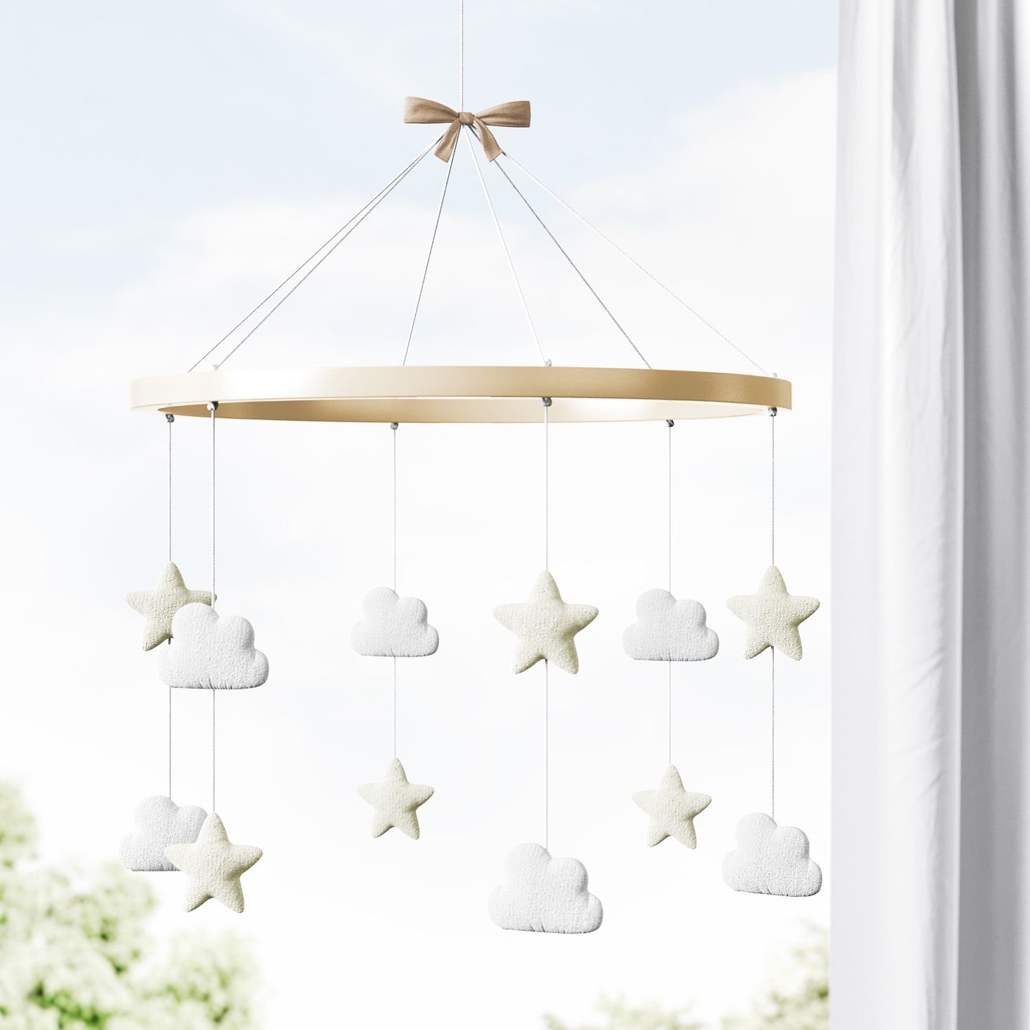 Um acessório clássico com uma proposta lúdica para compor a decoração do quarto de bebê! O Móbile Nuvem e Estrela Branco e Bege pode ser usado no berço, na cama montessoriana, no teto e onde mais você preferir. Esse modelo combina com diversos temas e estilos, graças aos seus delicados enfeites!