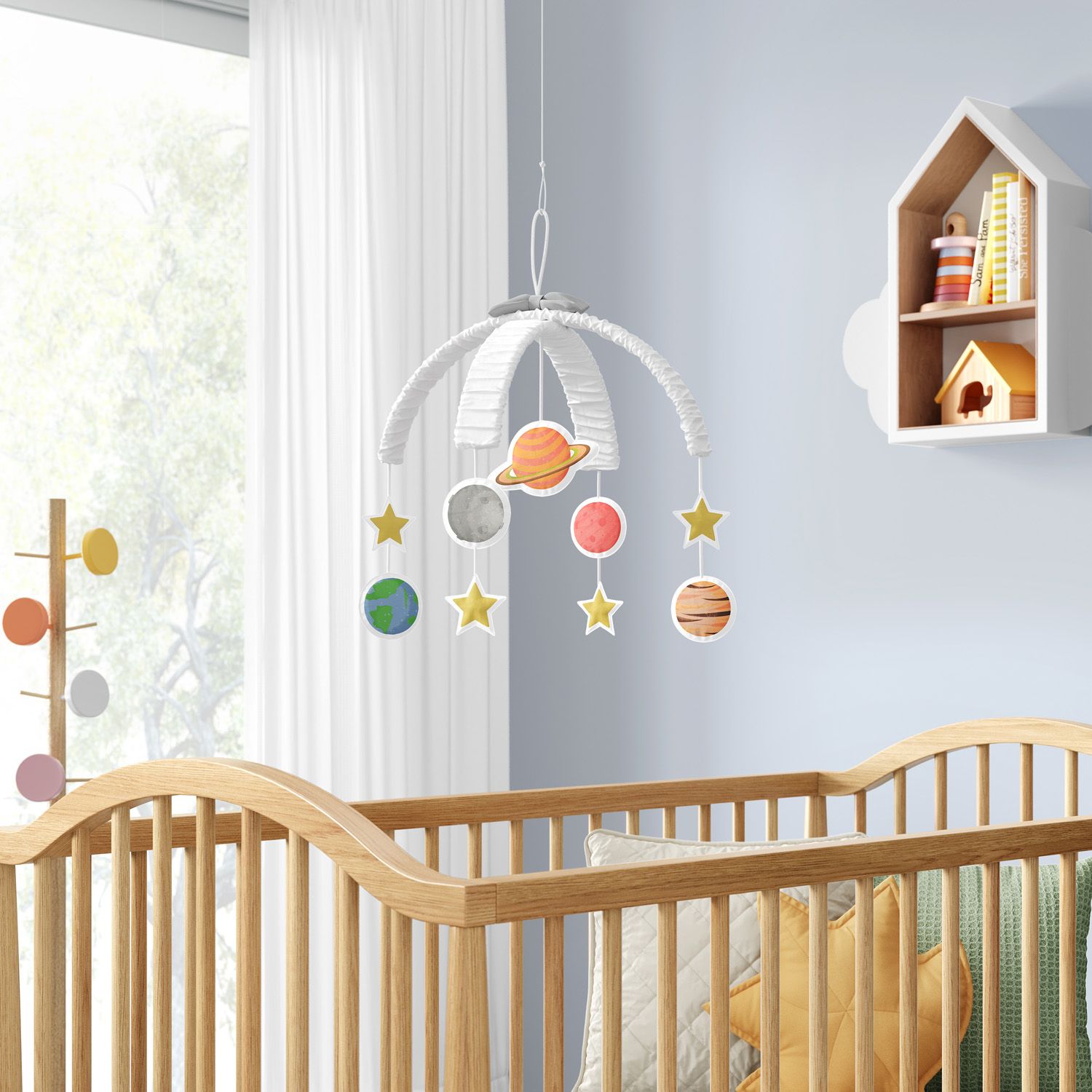 O Móbile Planetas é um acessório lúdico e com um toque extra de fofura para compor a decoração do quarto de bebê!