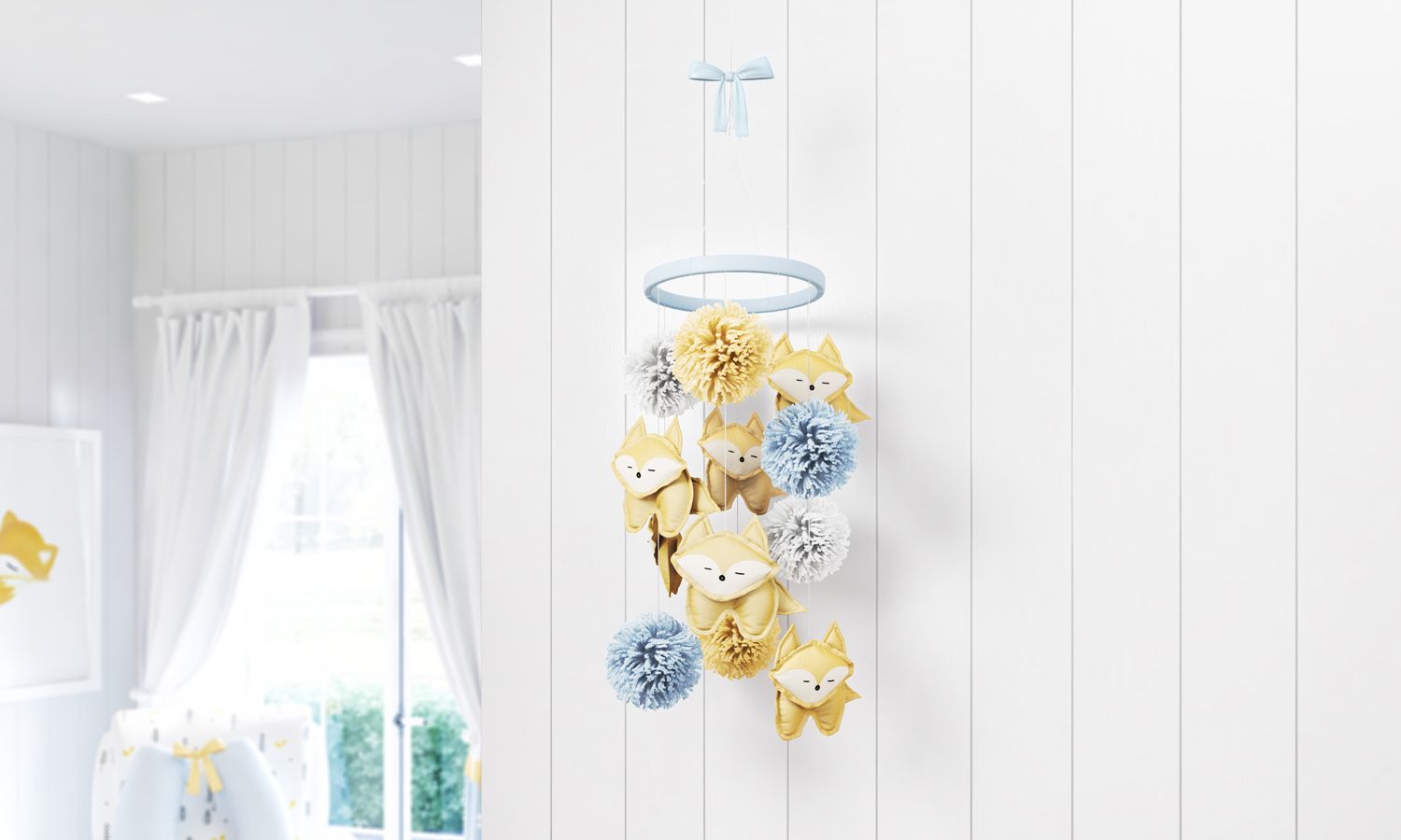 O Móbile da Coleção Raposinha é pura fofura e vai estimular a imaginação do seu bebê com formas, cores e movimentos! Esse modelo exclusivo Grão de Gente é composto por um suporte e cinco móbiles de raposinha, prontos para arrancar as primeiras risadas do neném. O movimento das peças, presas por uma argola, vai entreter o pequeno dentro do bercinho, enquanto a paleta de cores tranquiliza graças a combinação do azul bebê com amarela.