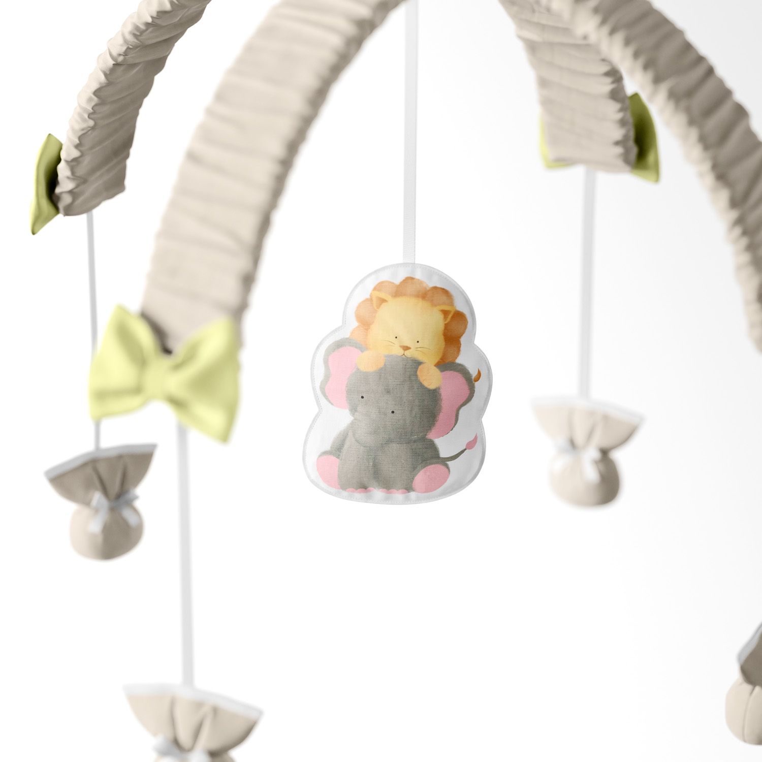 Confeccionado em tecido de toque suave, o acessório traz a originalidade dos bichinhos da savana que vão ajudar a relaxar e entreter o recém-nascido.